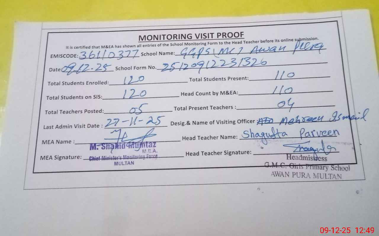 | EMIS Code: 36110377 | Name of School: GGPS MC AWAN PURA | |||