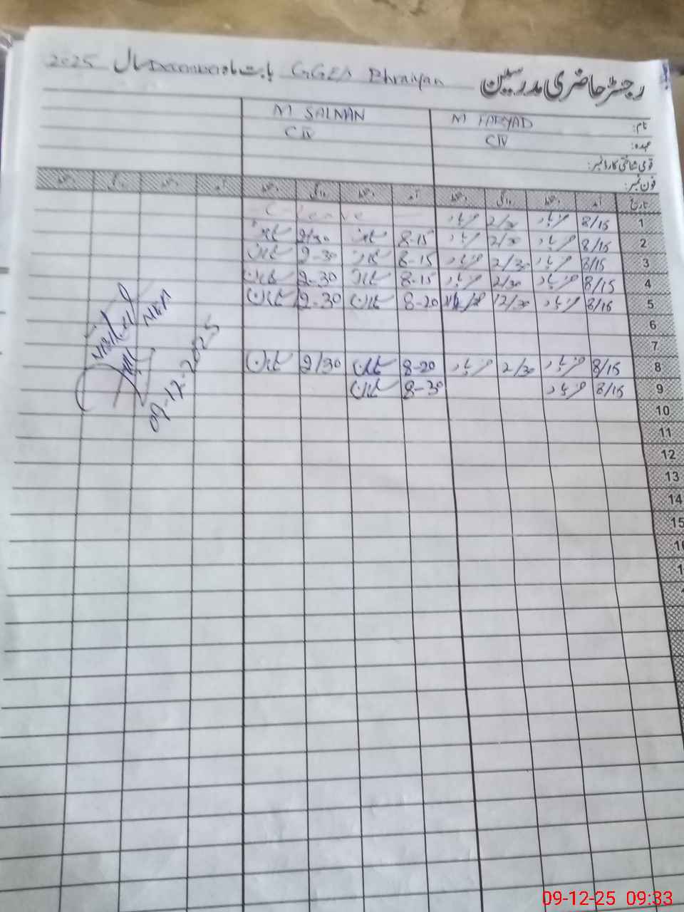 | Monitoring Date: 09-12-2025 | Start Time: 09-12-2025 09:00 AM | End Time: 09-12-2025 09:35 AM | Name of MEA: N-**** Ah**** | |