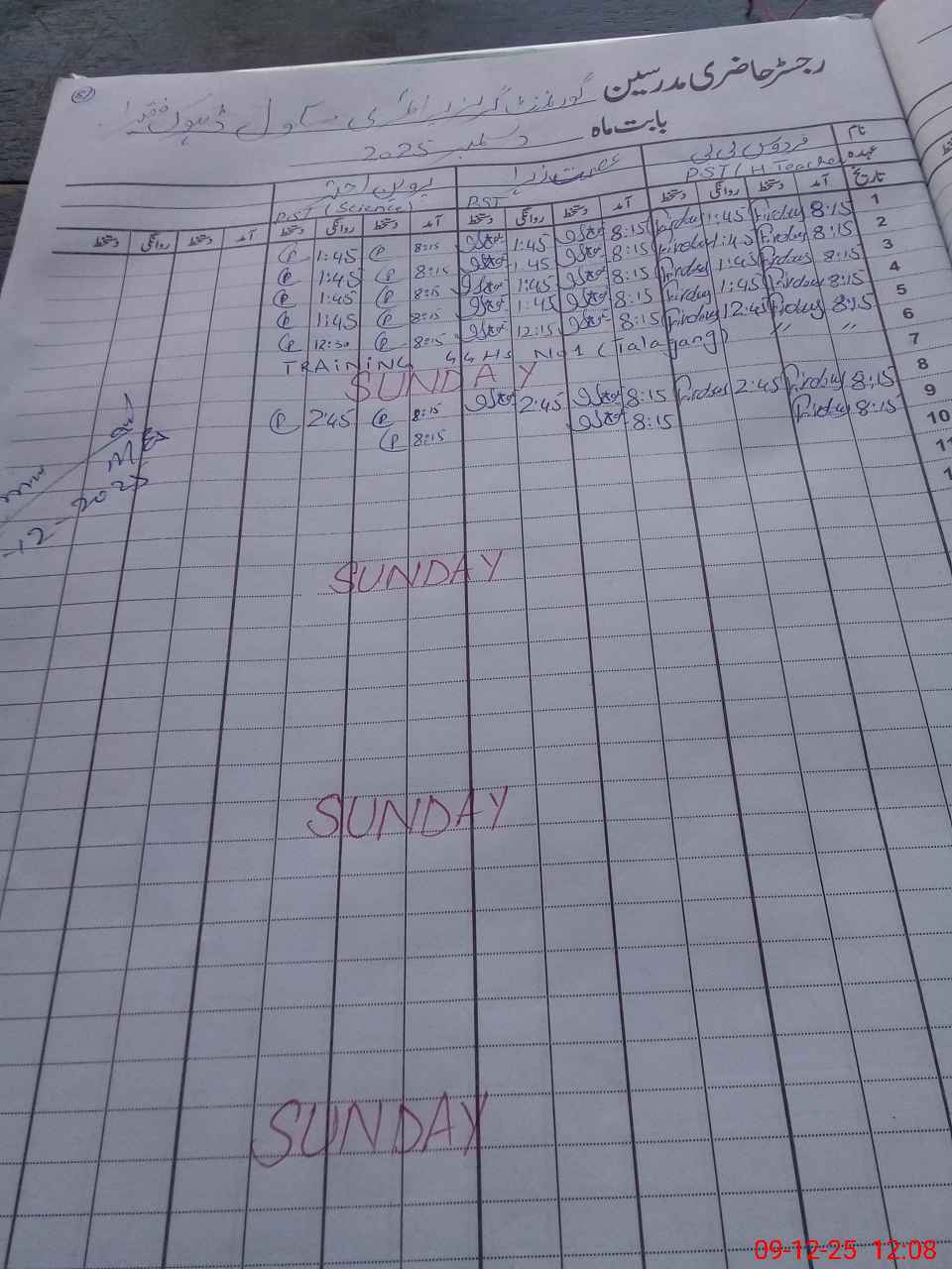 | CNIC | Full Name | Designation | R/C | Absence During Last Calender Month |
