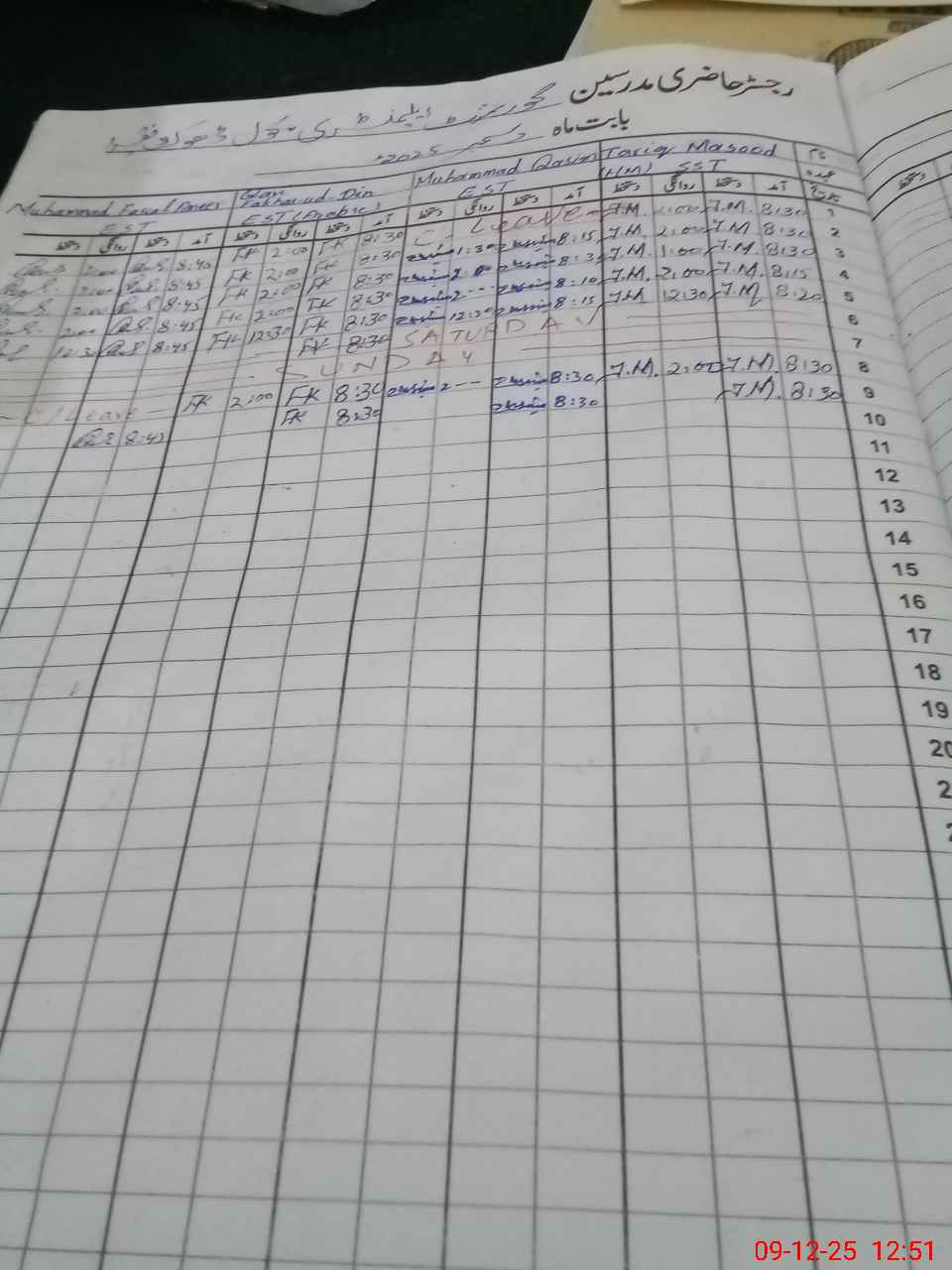 | 37**** | Ra**** Fa**** | EST Urdu | Regular | 0 | 0 | 0 | 0 | 0 | 0 | 0 | 0 | 0 | Maternity |