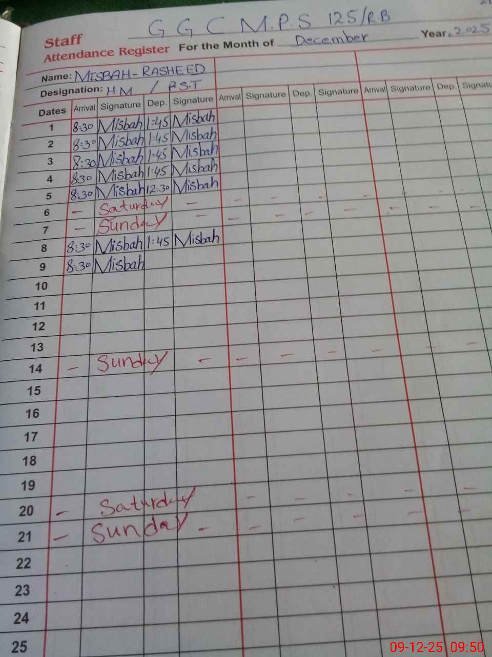 | CNIC | Full Name | Designation | R/C | Absence During Last Calender Month |