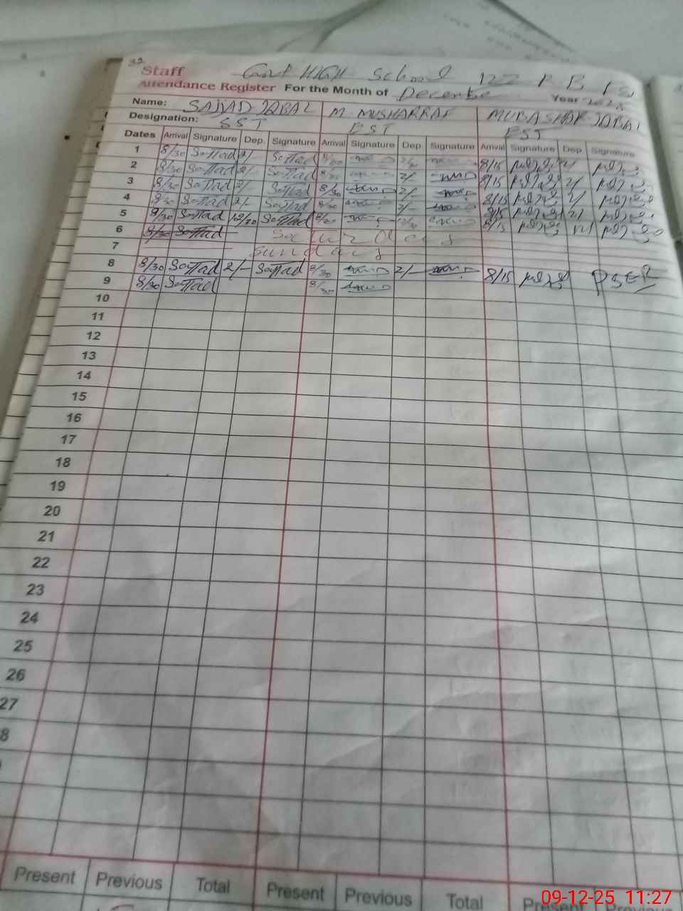 | 33**** | Aq**** Am**** | EST Science | Regular | 0 | 0 | 0 | 0 | 0 | 0 | 0 | 0 | 0 | Absent (Un-Authorized) |