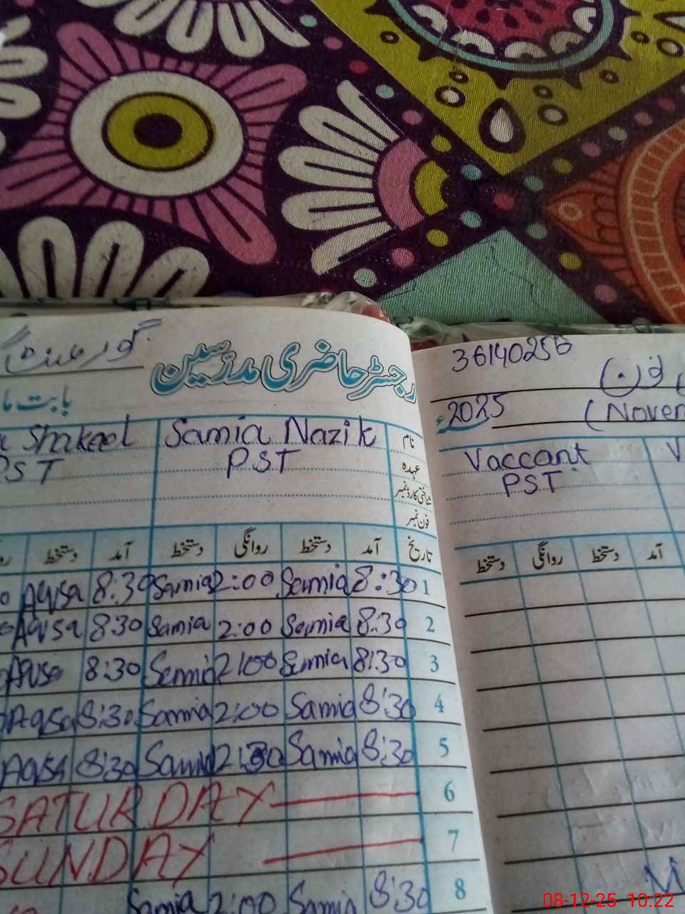 | Name: Sa**** Na**** Designation: (School Headmaster's/Headmistress's) PST Phone/Cell Number: 03**** |
