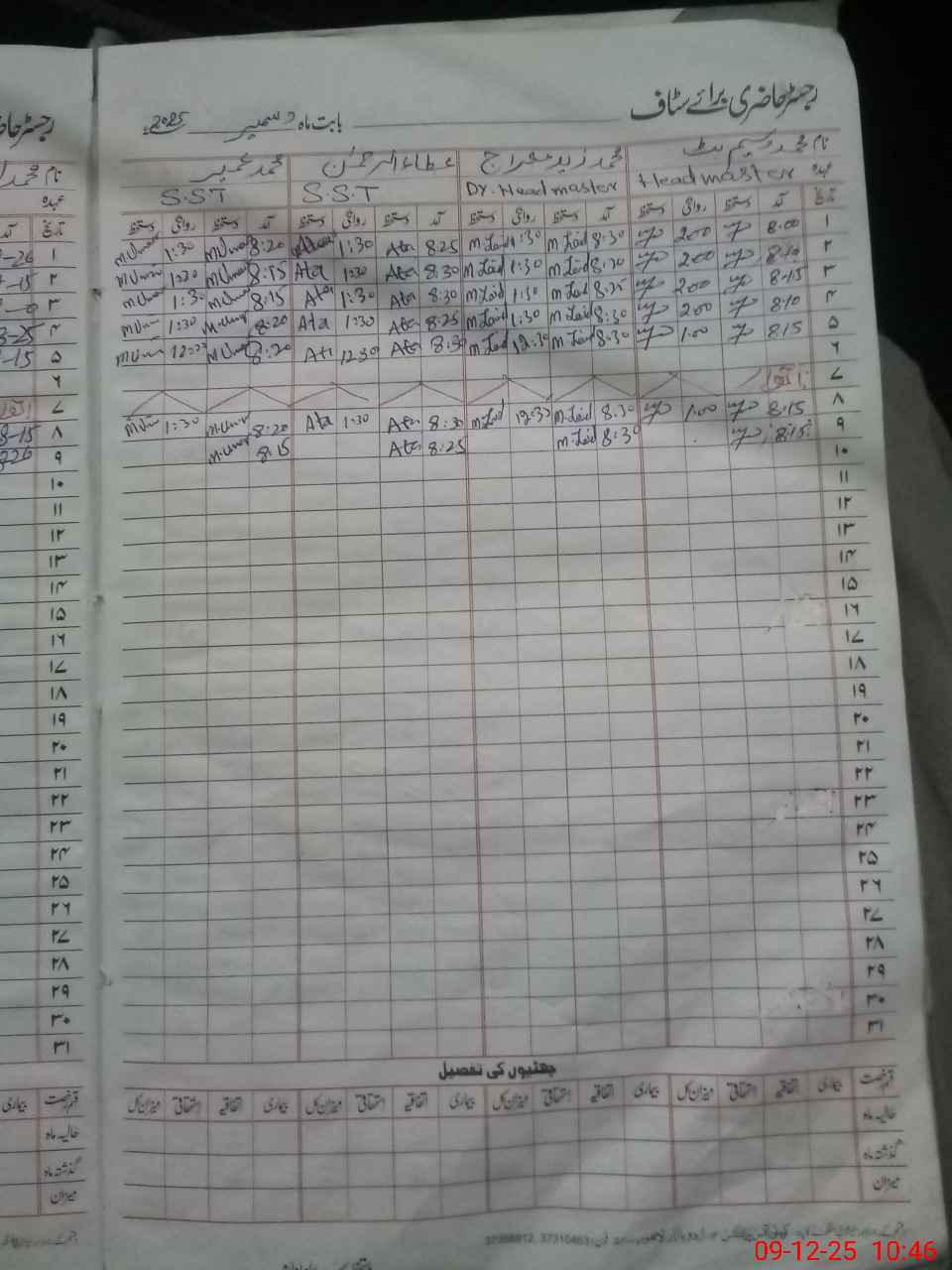 | Remarks (Use Separate Page if Required): 1 Teacher Farhan Bashir PST absent from duty since 06 November 2025 to till date 2 There are 02 classrooms are under construction since 27 November 2025 | |||||