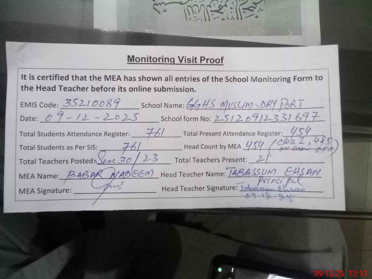 | EMIS Code: 35210089 | Name of School: GGHS MUSLIM DRY PORT MUGHALPURA | |||