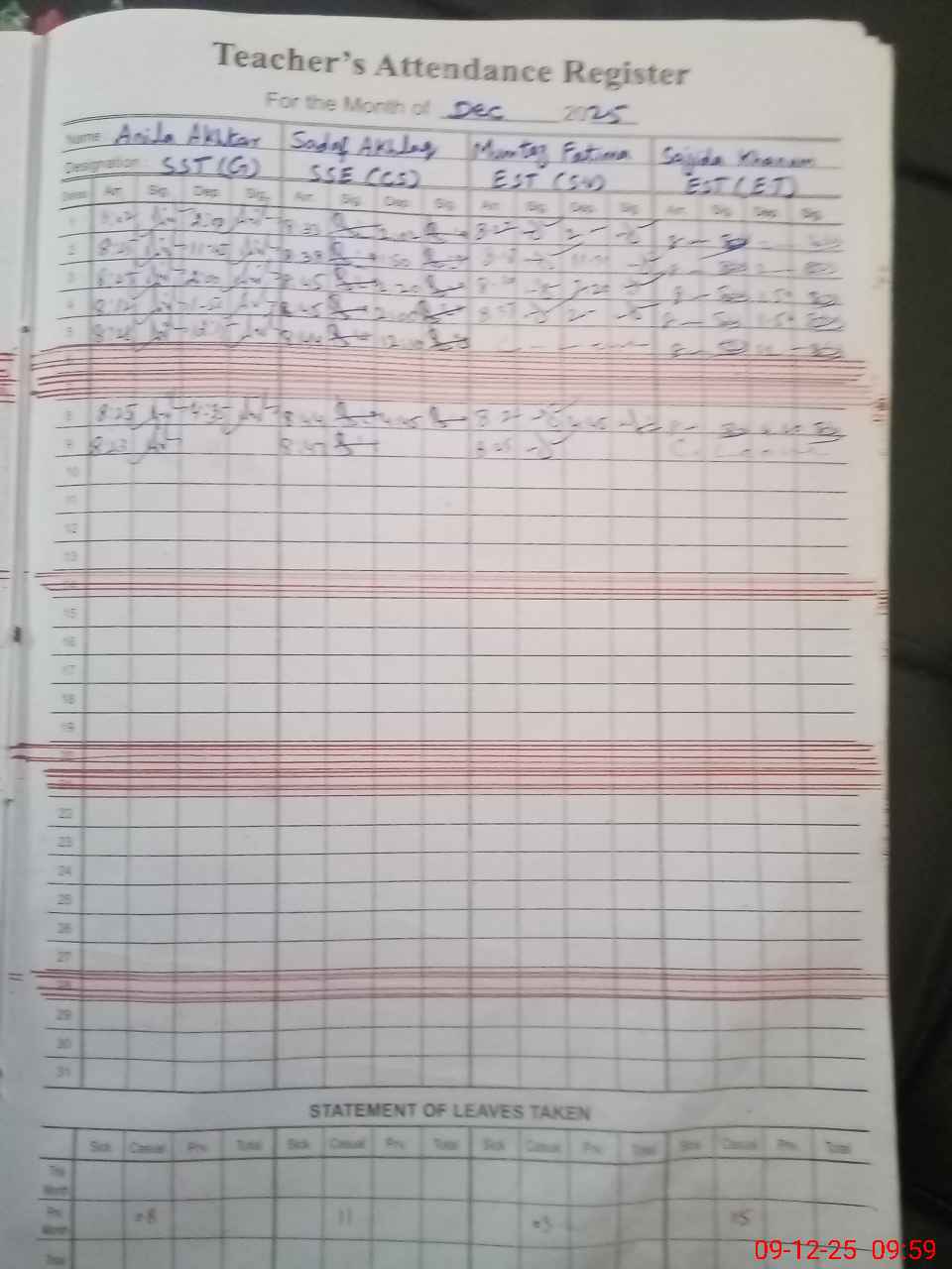 | 37**** | Ma**** Ta**** | EST Science | Regular | 0 | 0 | 0 | 0 | 0 | 0 | 0 | 0 | 0 | Absent (Un-Authorized) |