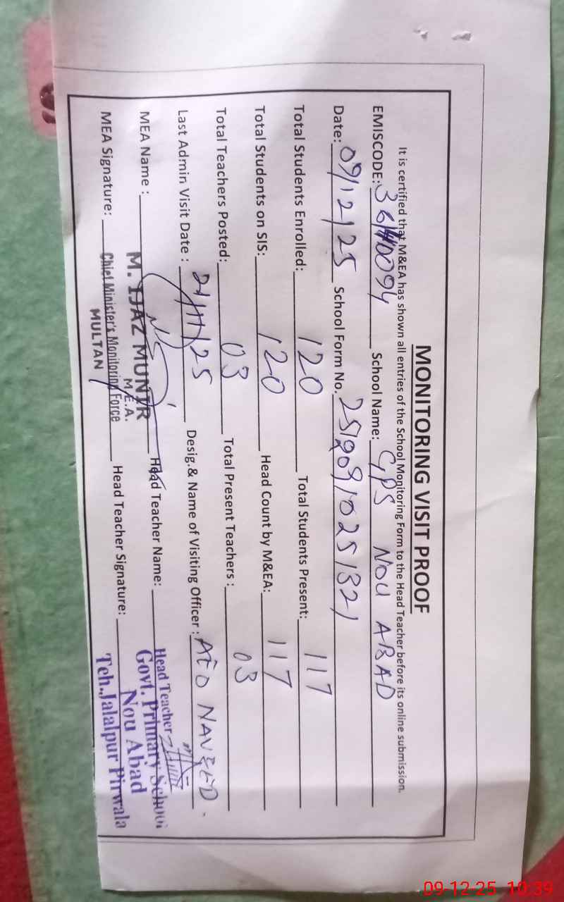 | EMIS Code: 36140094 | Name of School: GPS NOU ABAD JALALPUR PIRWALA | |||