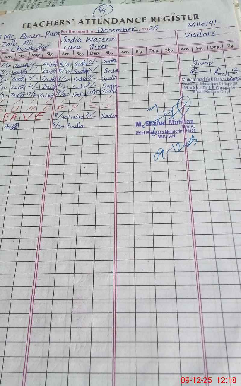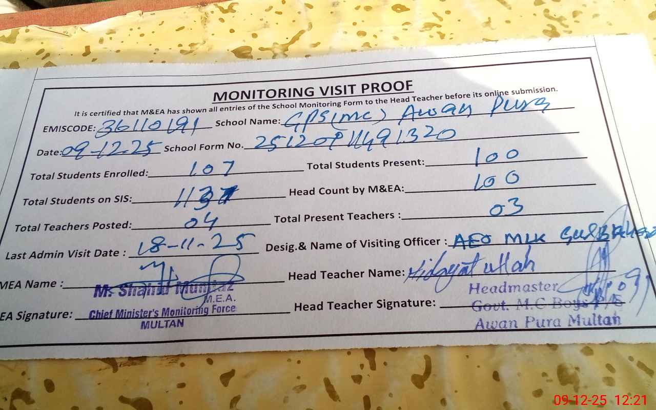 | Attendance Register | Head Teacher | MEA with School | Visit Proof |