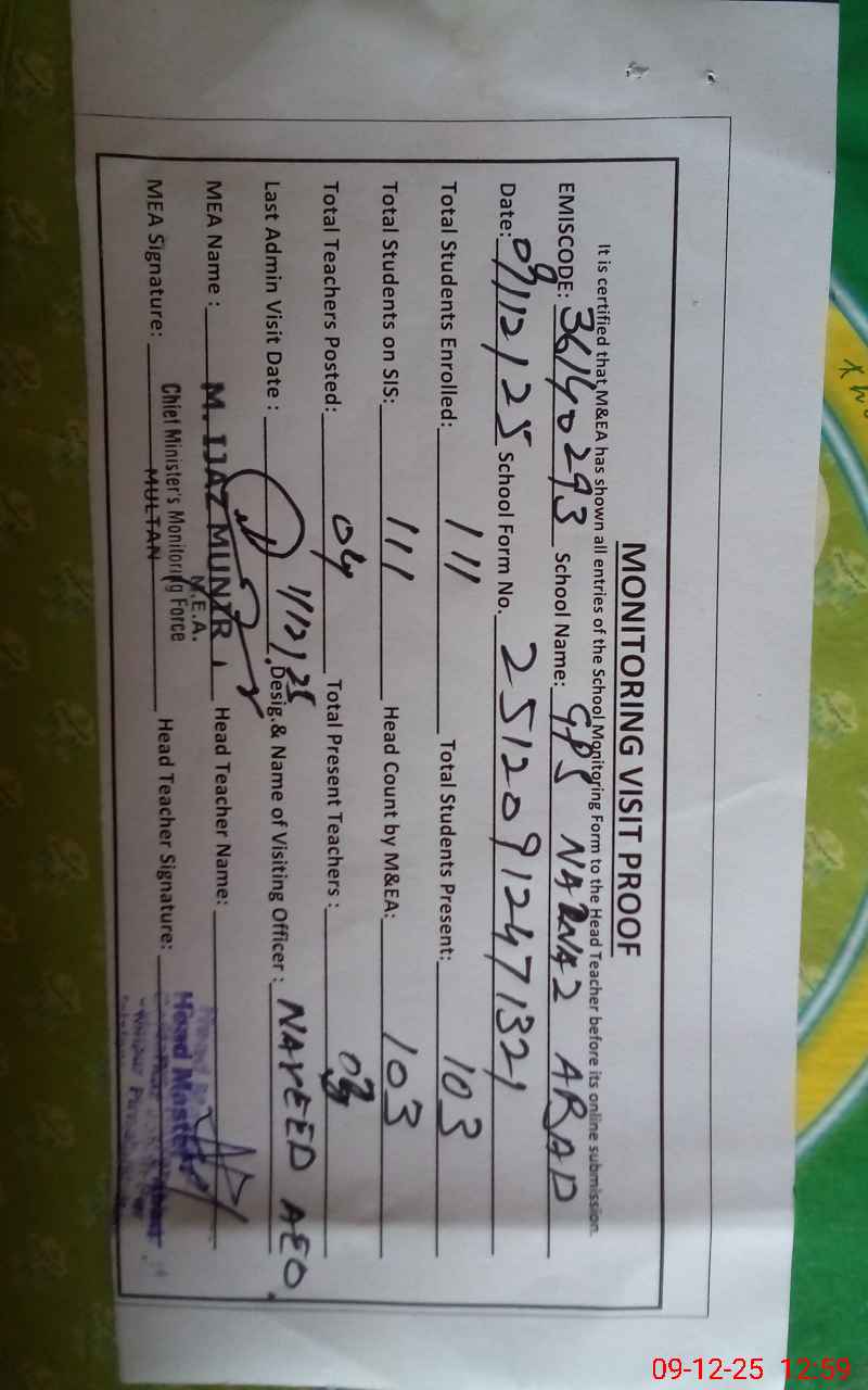 | EMIS Code: 36140293 | Name of School: GPS NAWAZ ABAD MOUZA SHADI KACHALA P/O GHAZI PUR | |||