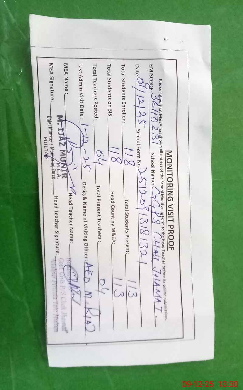| EMIS Code: 36140231 | Name of School: GGPS CHAK JAHAMAT | |||