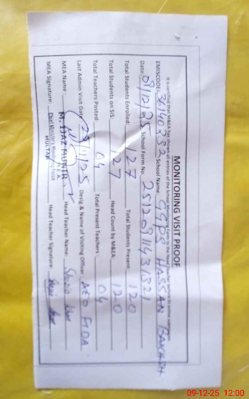 | EMIS Code: 36140232 | Name of School: GGPS BASTI HASSAN BAKHSH WALA | |||