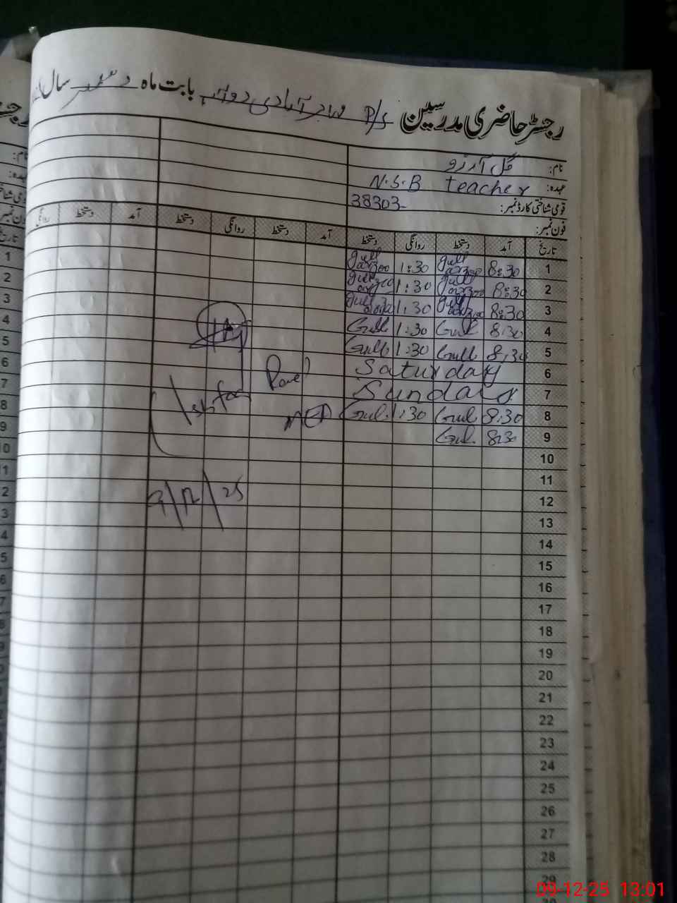 | CNIC | Full Name | Designation | R/C | Absence During Last Calender Month |