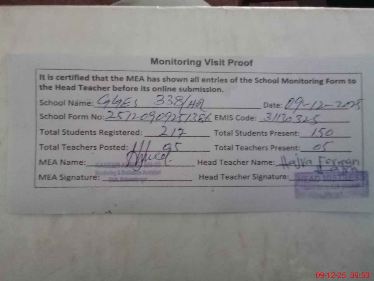 | EMIS Code: 31130325 | Name of School: GGES CHAK NO 338 HR | |||
