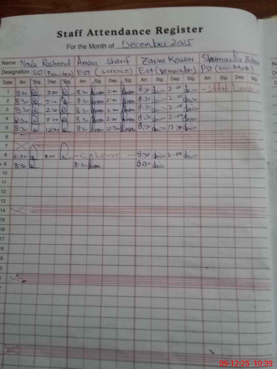 | 31**** | Sh**** Za**** | Regular | 0 | 0 | 30 | 0 | 0 | 0 | 0 | 0 | 0 | Absent (Un-Authorized) | |