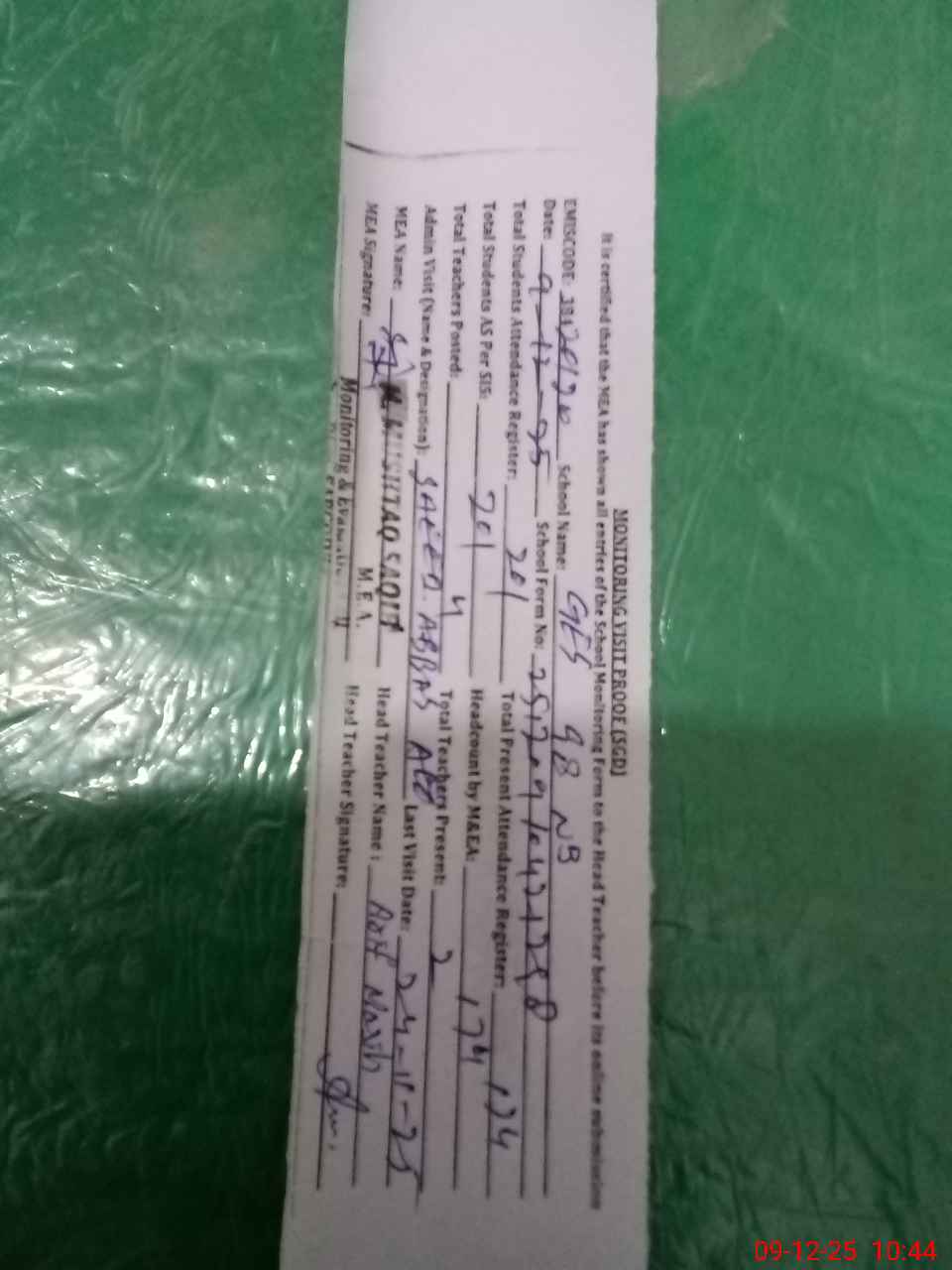 | Certified that this School was Inspected by the Undersigned MEA/DMO Today and the Information Stated Above is as Per Record. | |||||