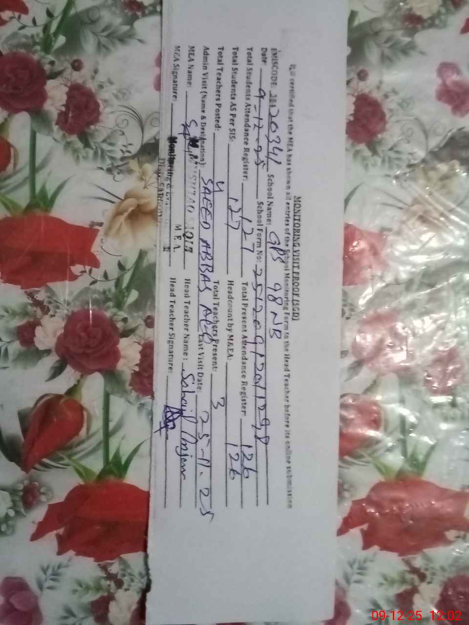 | EMIS Code: 38420341 | Name of School: GPS CHAK NO.98 NB | |||