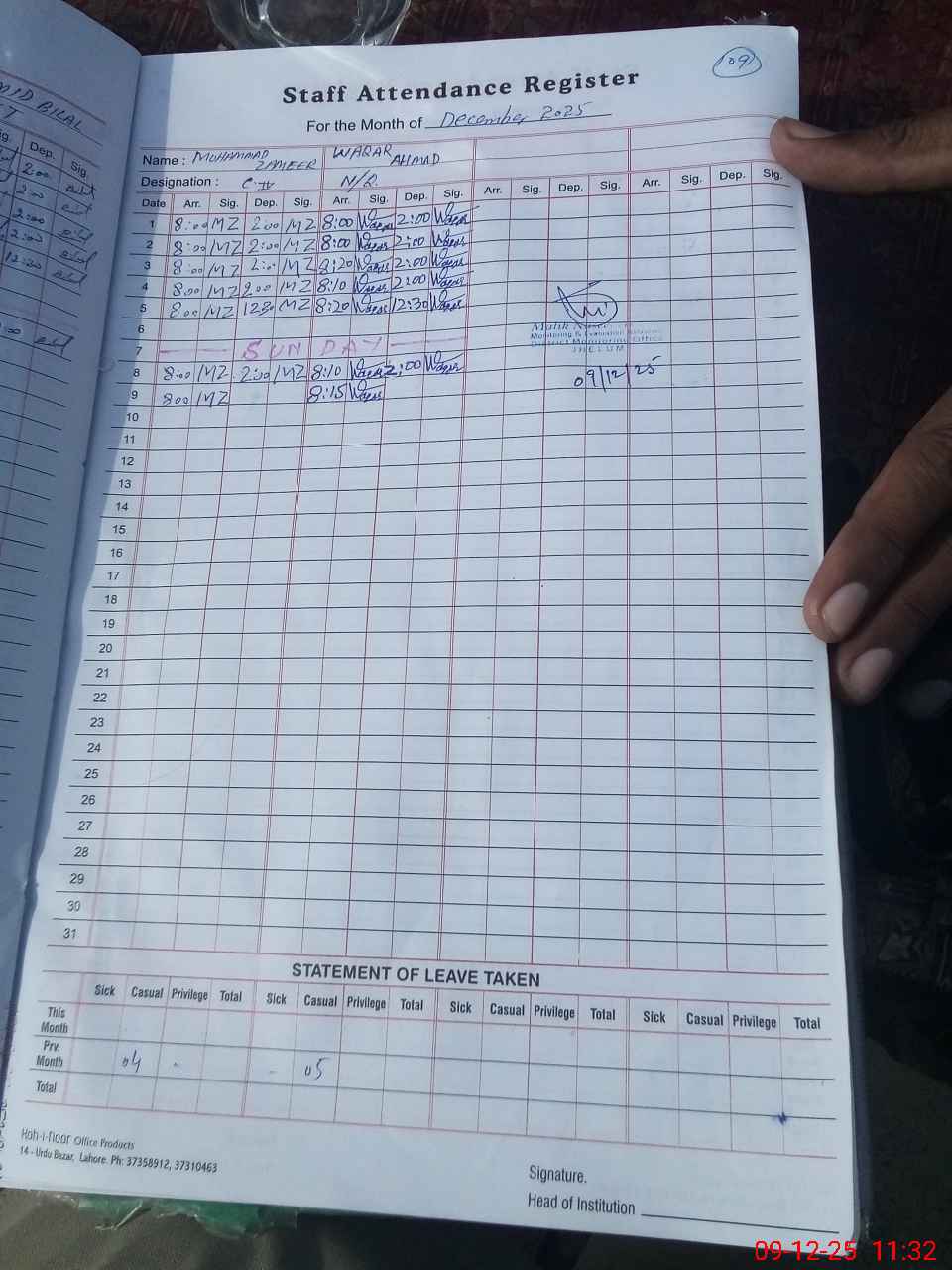 | Name: Mu**** Ra**** Designation: (School Headmaster's/Headmistress's) HEADMASTER Phone/Cell Number: 03**** |