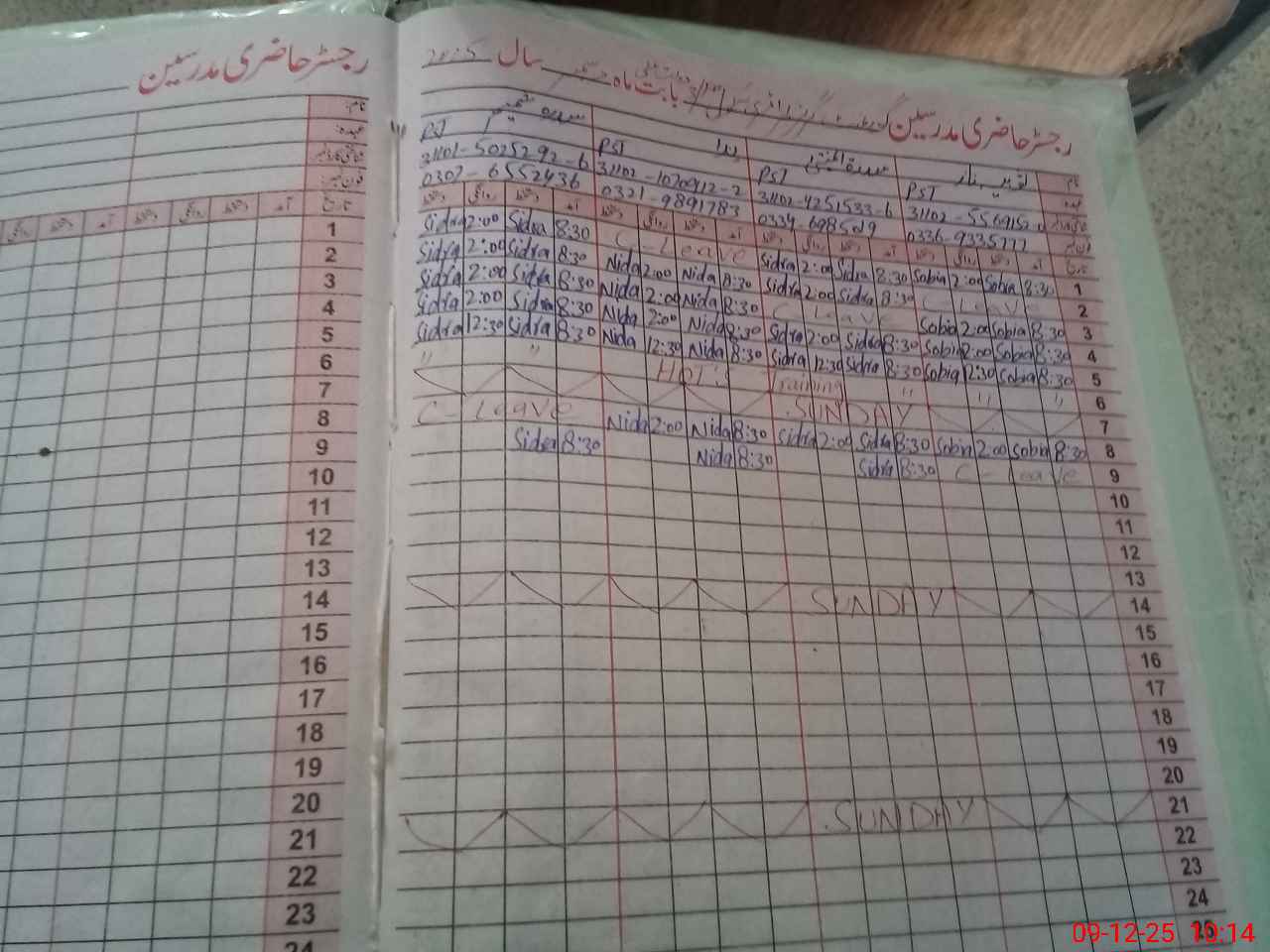 | CNIC | Full Name | Designation | R/C | Absence During Last Calender Month |