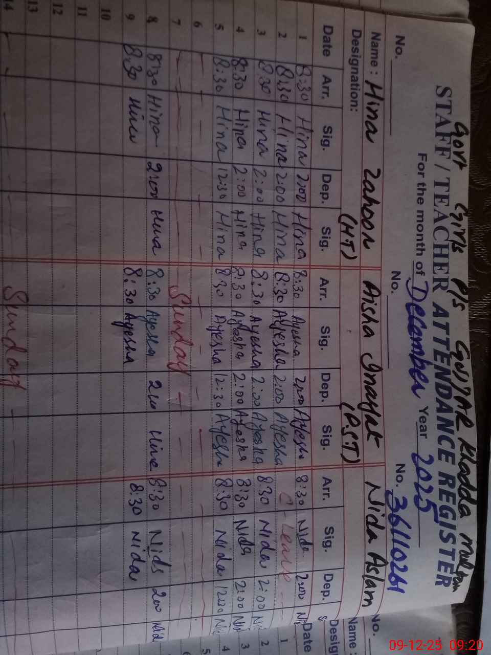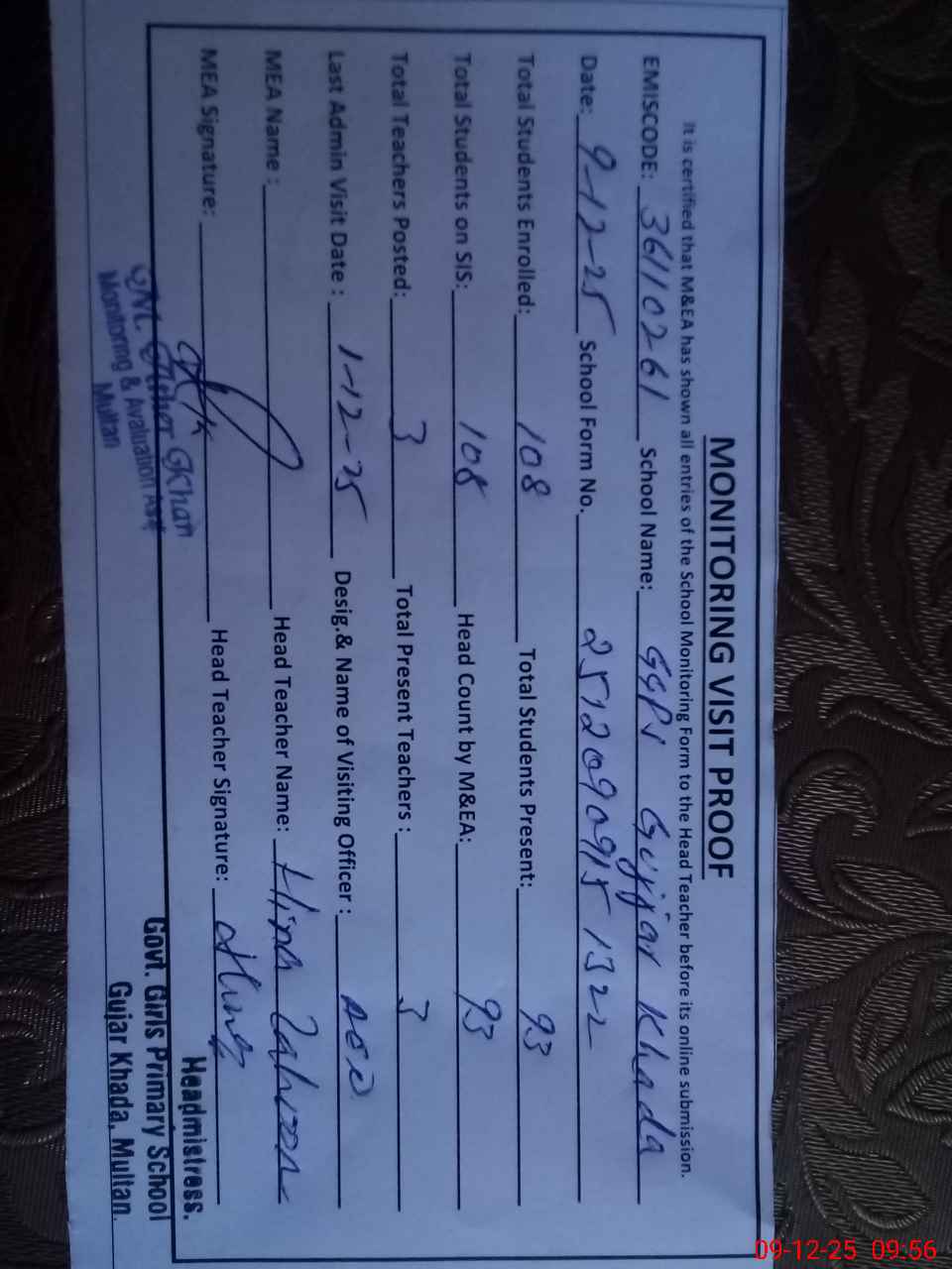 | EMIS Code: 36110261 | Name of School: GGPS GUJJAR KHADA MULTAN | |||