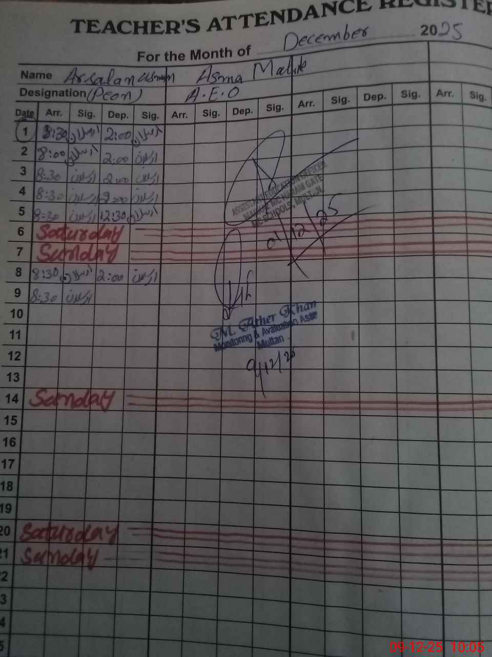 | EMIS Code: 36110372 | Name of School: GGPS MC GUJAR KHADDA MULTAN | |||