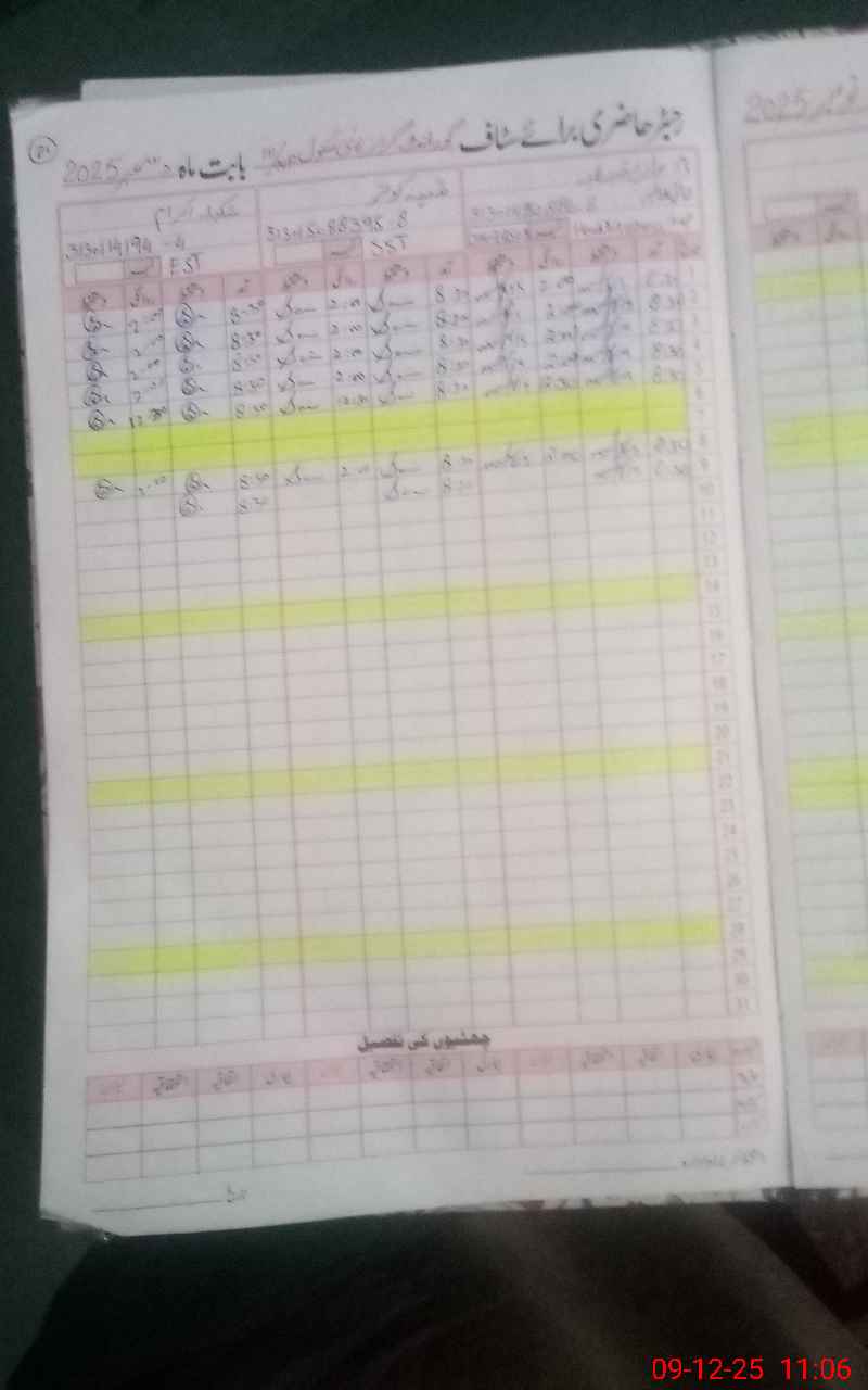 | CNIC | Full Name | Designation | R/C | Absence During Last Calender Month |