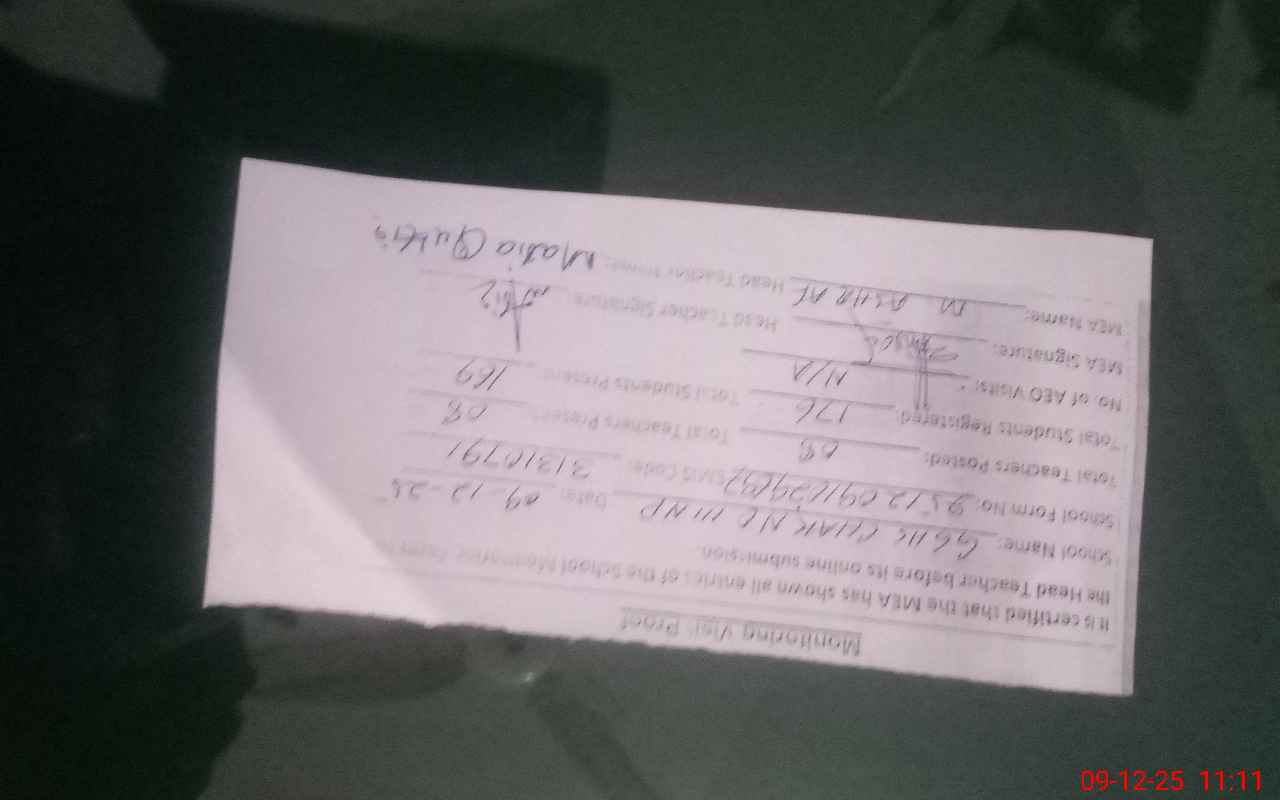 | Attendance Register | Head Teacher | MEA with School | Visit Proof |
