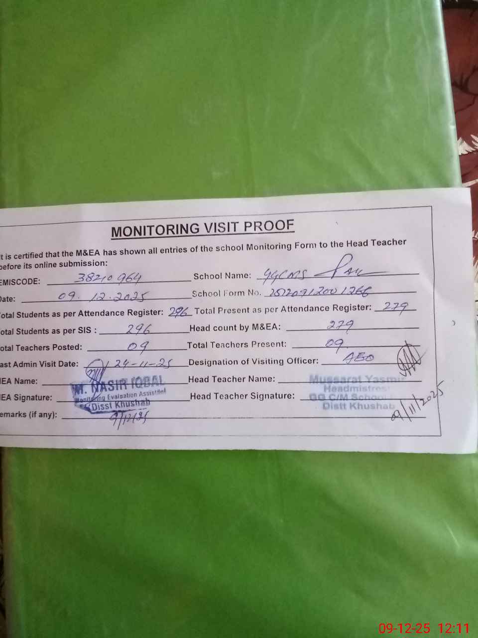 | EMIS Code: 38210964 | Name of School: GGCMS PAIL | |||