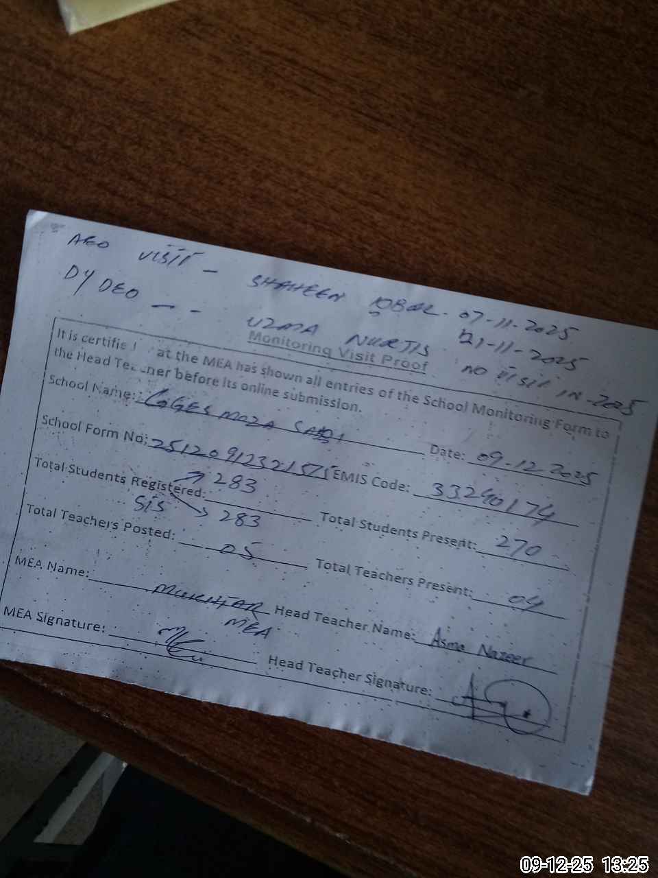 | EMIS Code: 33240174 | Name of School: GGES SABQI MOZA SABQI (Newly upgraded 2025) | |||