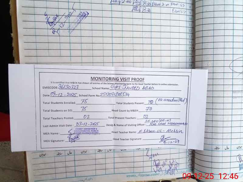 | EMIS Code: 36130323 | Name of School: GPS JAVED ABAD P/O SIKANDARABAD MULTAN | |||