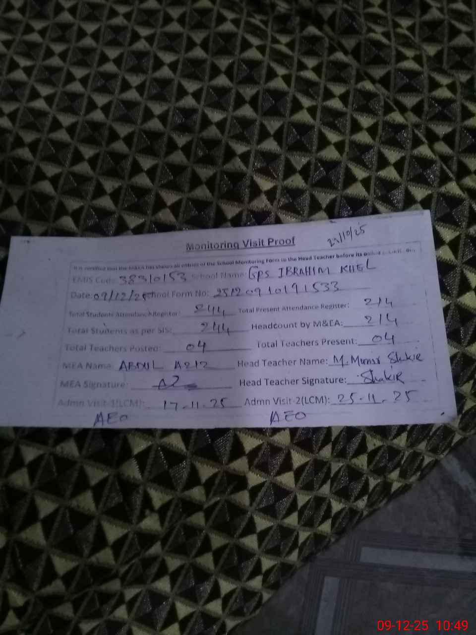 | EMIS Code: 38310153 | Name of School: GPS IBRAHIM KHEL PO TRAGH ISA KHEL MIANWALI | |||