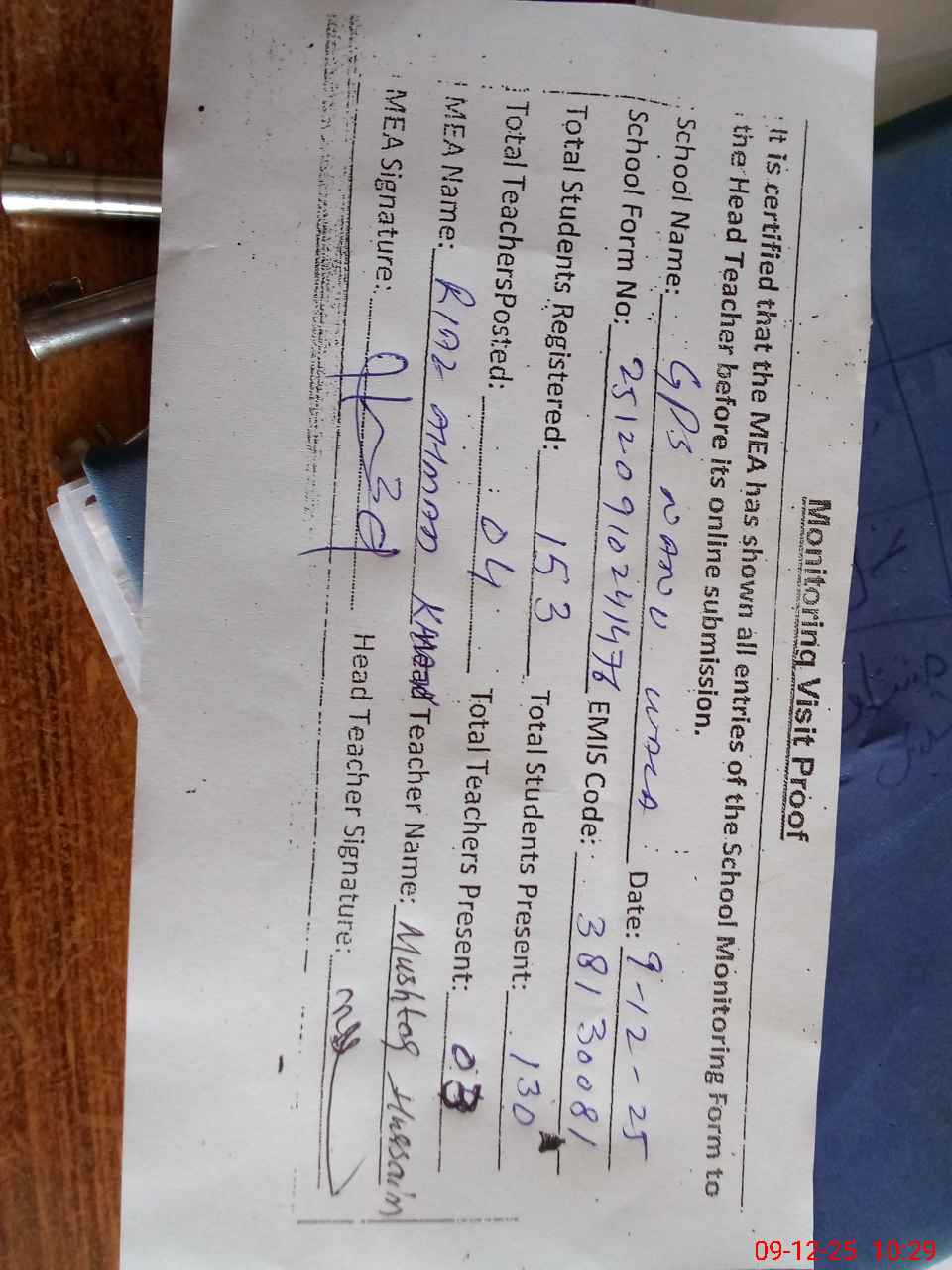 | EMIS Code: 38130081 | Name of School: GPS NANU WALA | |||