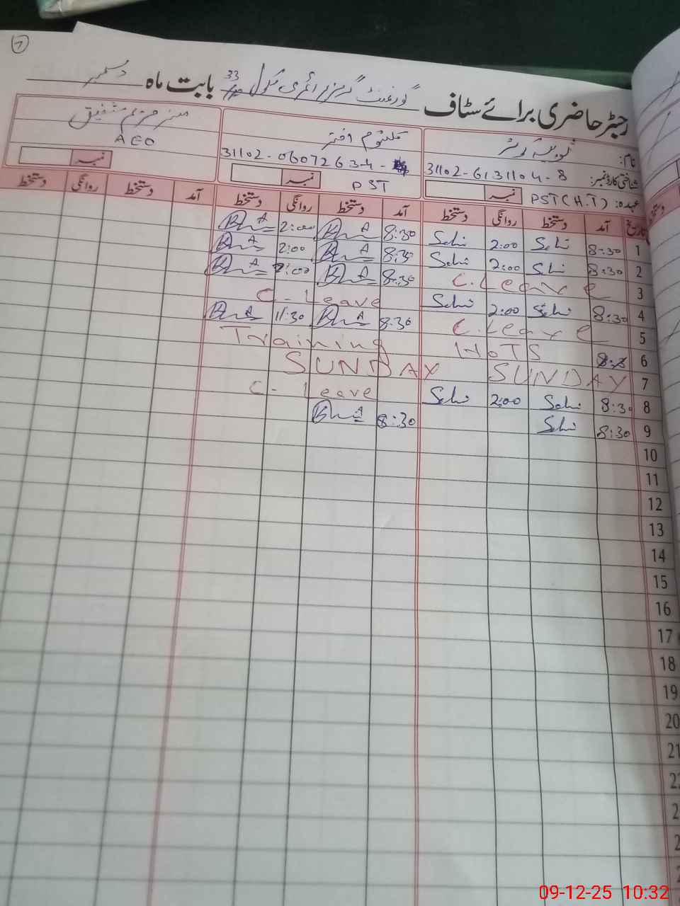 | CNIC | Full Name | Designation | R/C | Absence During Last Calender Month |