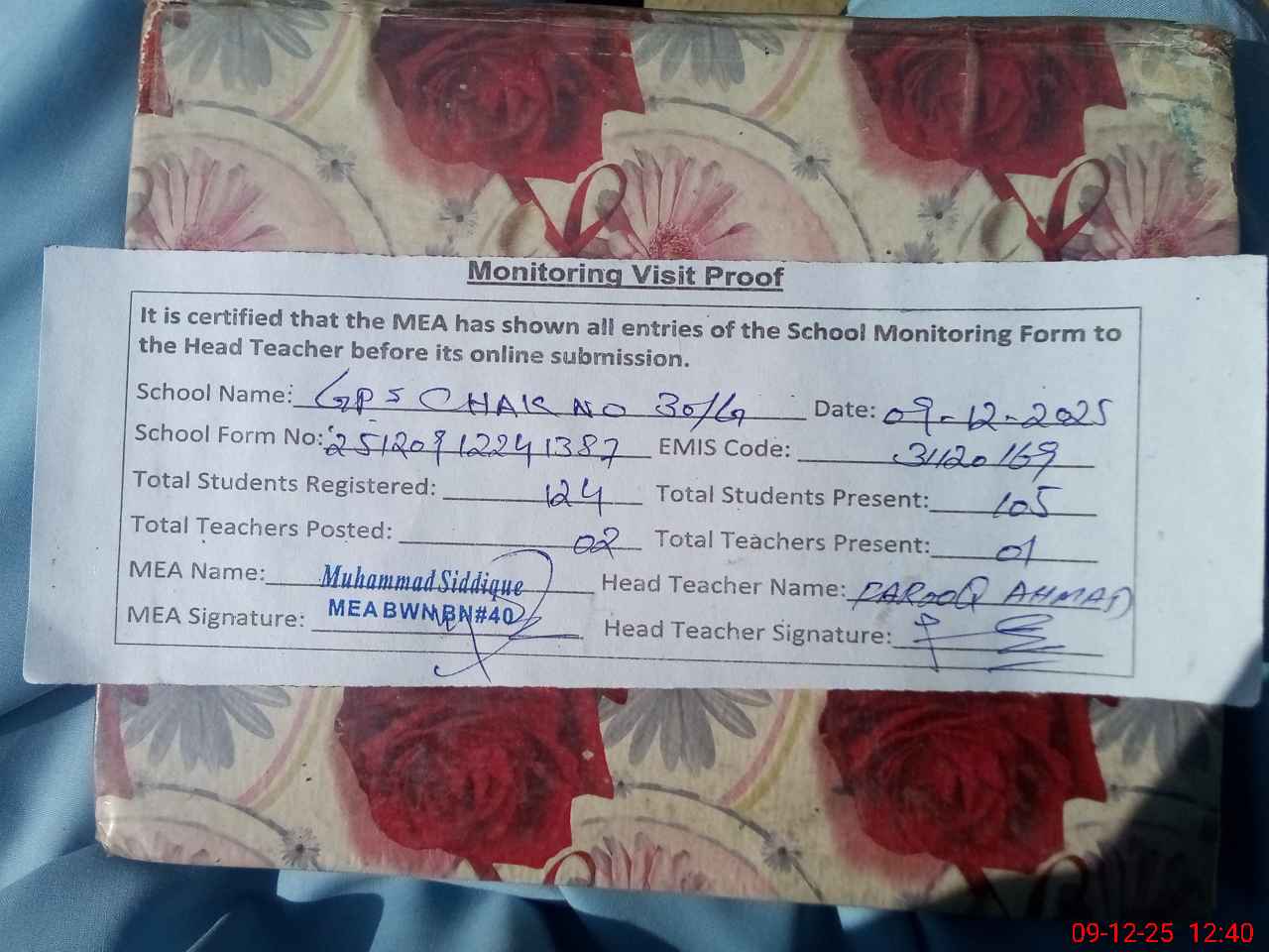 | EMIS Code: 31120169 | Name of School: GPS CHAK 30 GAJIANI | |||