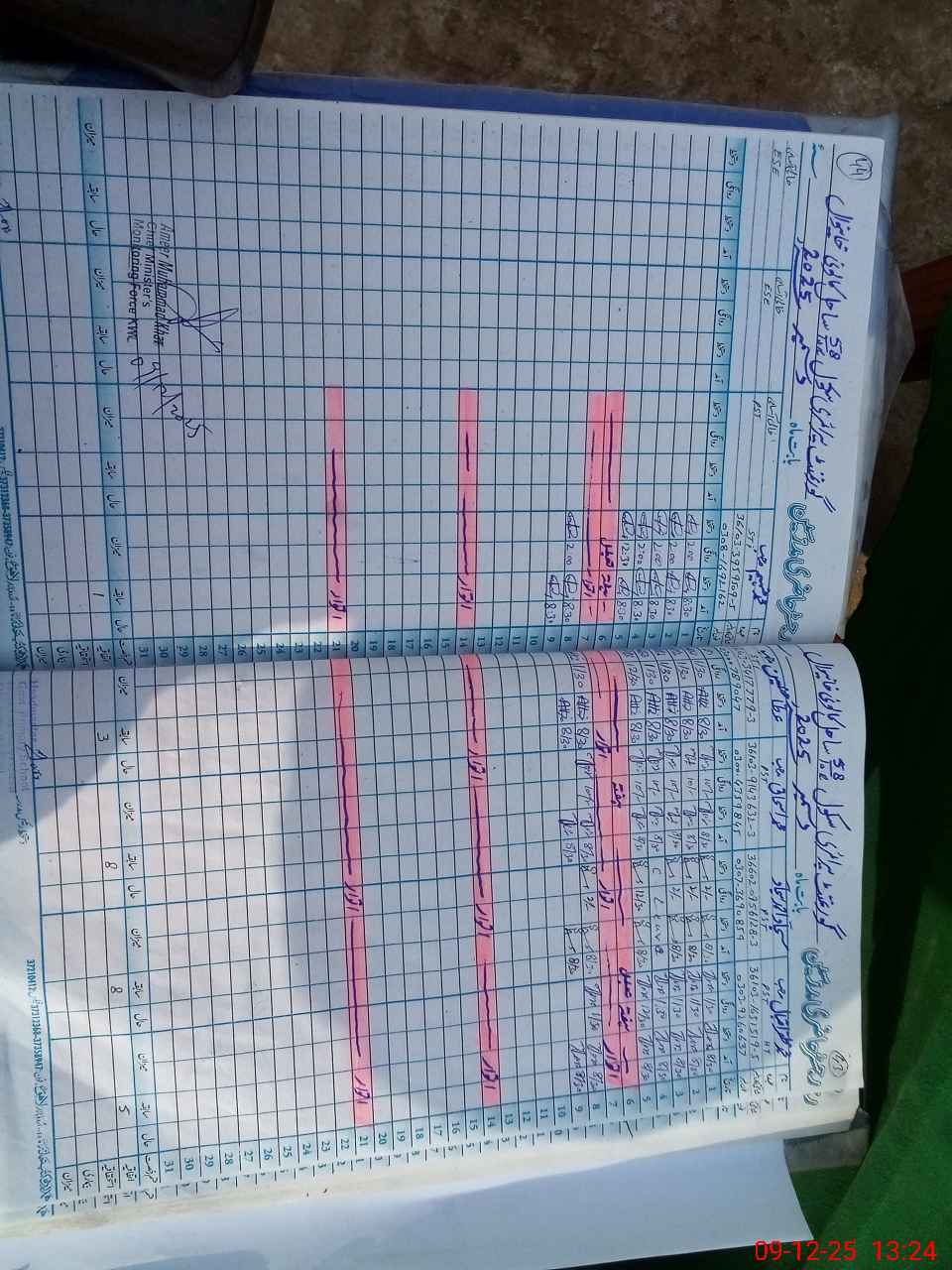 | CNIC | Full Name | Designation | R/C | Absence during last cal. month |