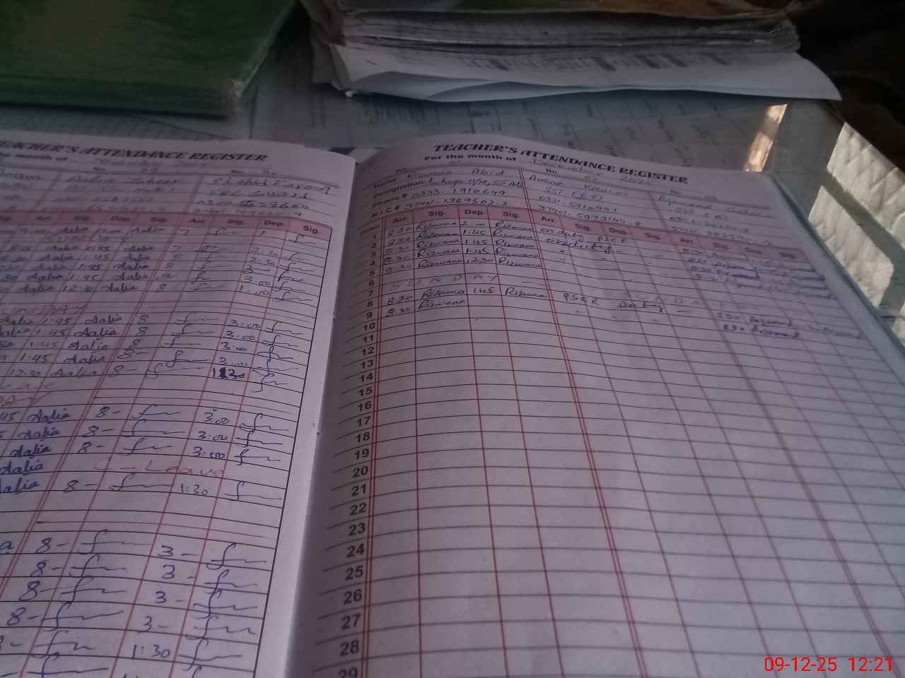 | CNIC | Full Name | Designation | R/C | Absence during last cal. month |