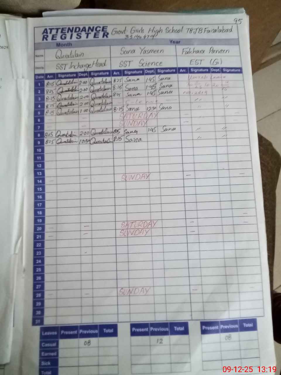 | 33**** | Qu**** | SST Science | Regular | 0 | 0 | 0 | 0 | 0 | 0 | 0 | 0 | 0 | Exam Duty |