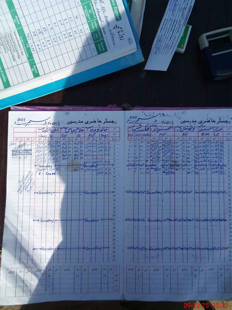 | CNIC | Full Name | Designation | R/C | Absence During Last Calender Month |