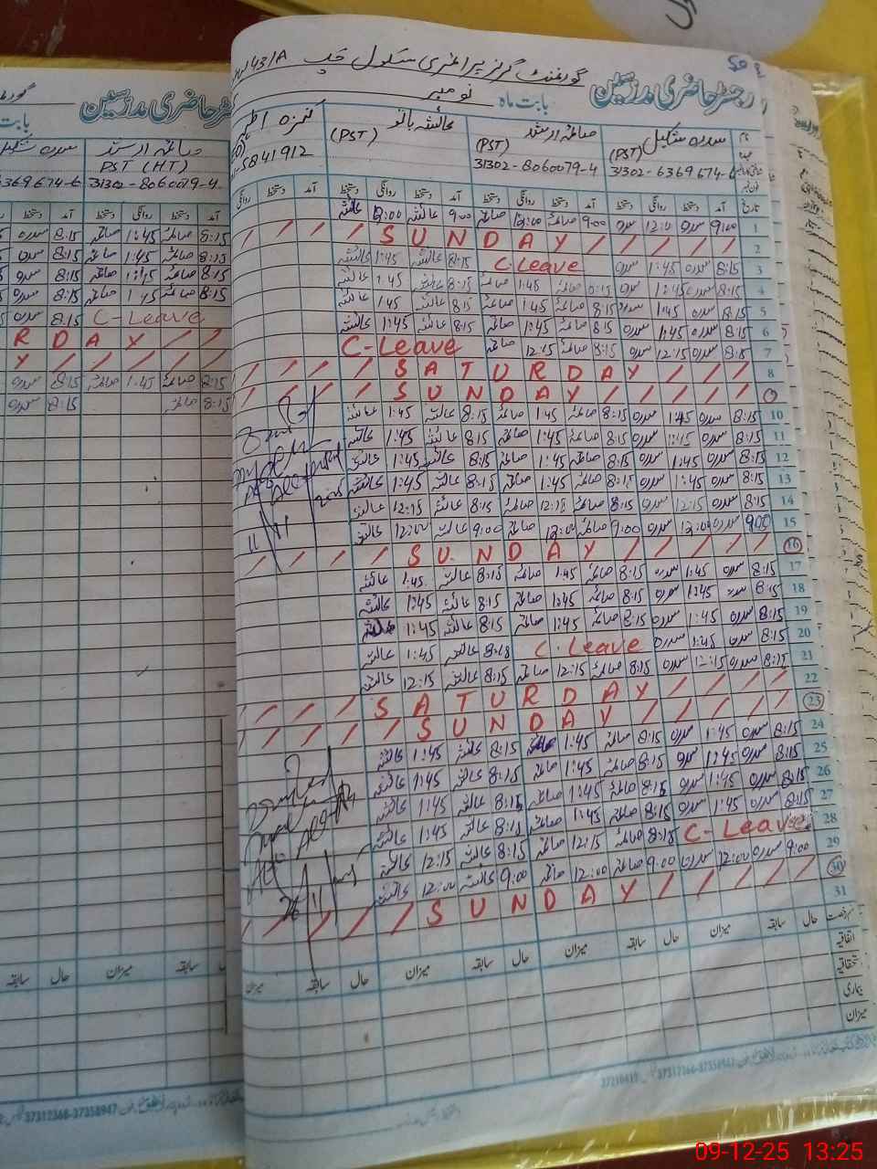 | Name: SI**** SH**** Designation: (School Headmaster's/Headmistress's) PST Phone/Cell Number: 03**** |