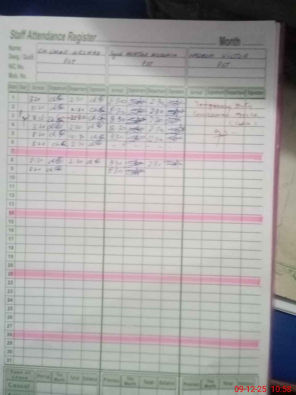 | 34**** | Ka**** Ar**** | PST Science/Maths | Regular | 0 | 0 | 0 | 0 | 0 | 0 | 0 | 0 | 0 | Maternity |