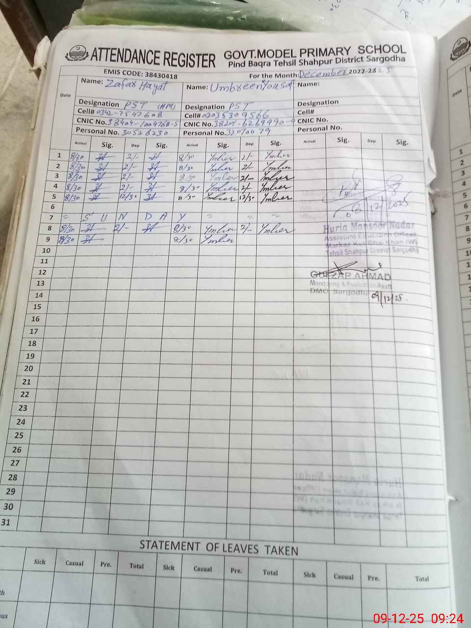 | Name: ZA**** HA**** Designation: (School Headmaster's/Headmistress's) PST Phone/Cell Number: 03**** |