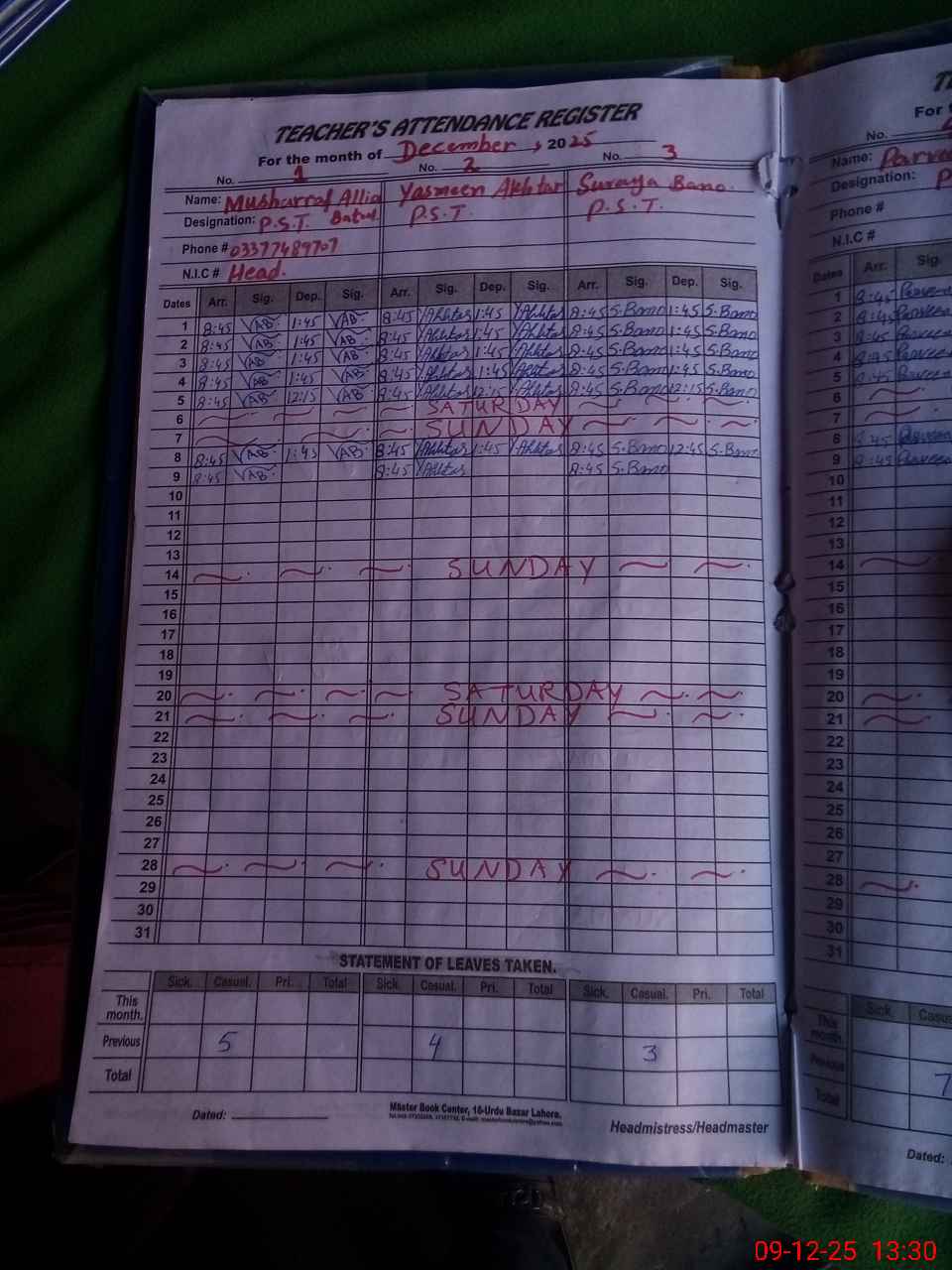 | Name: Mu**** Al**** Ba**** Designation: (School Headmaster's/Headmistress's) PST Phone/Cell Number: 03**** |