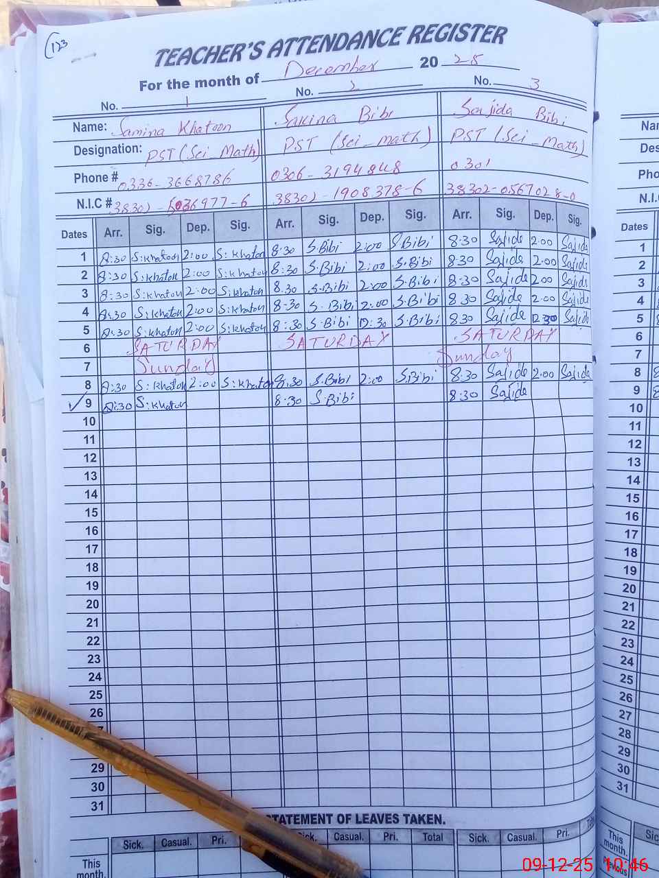 | Name: SA**** KH**** Designation: (School Headmaster's/Headmistress's) PST Phone/Cell Number: 03**** |