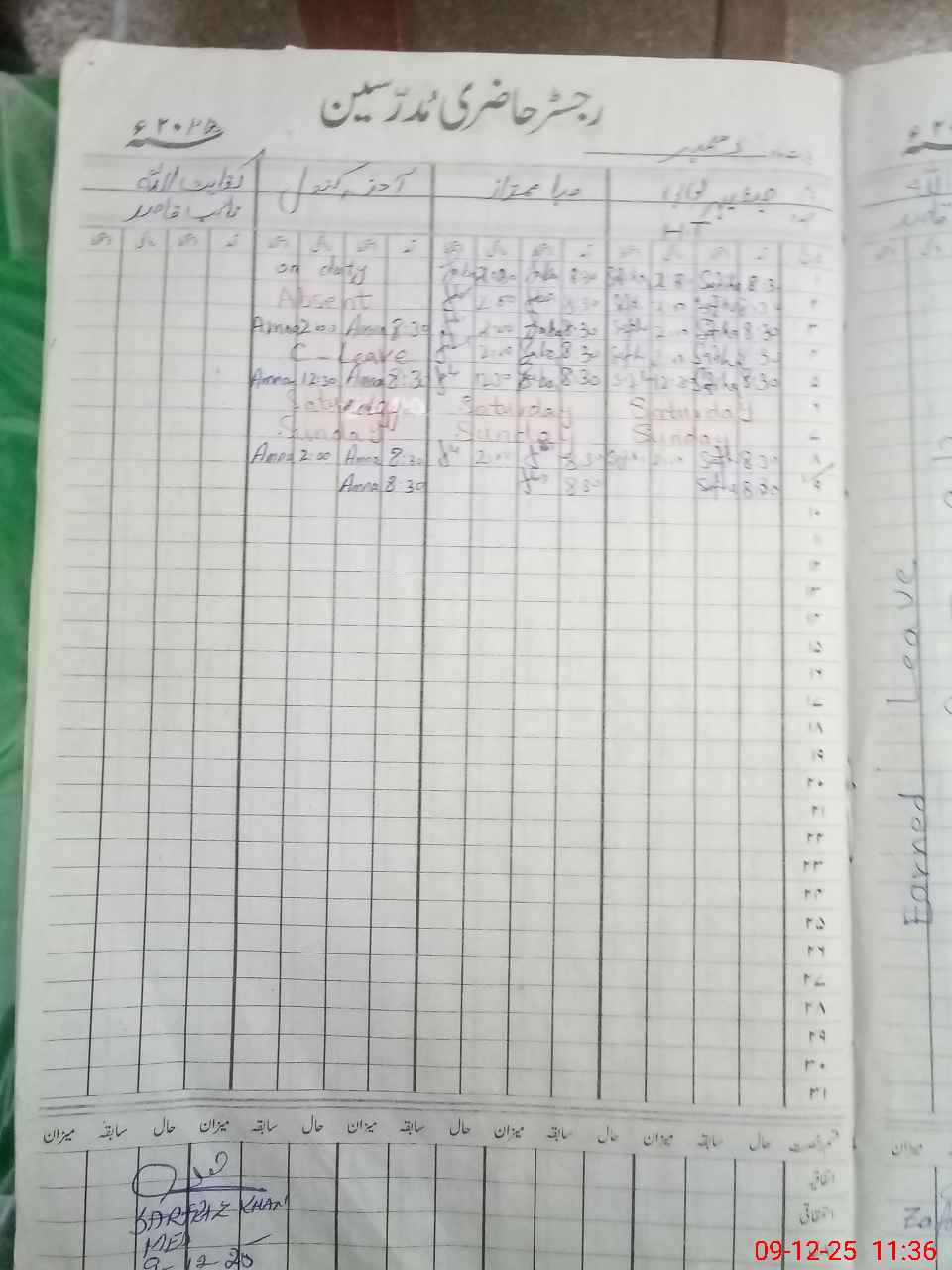 | CNIC | Full Name | Designation | R/C | Absence During Last Calender Month |