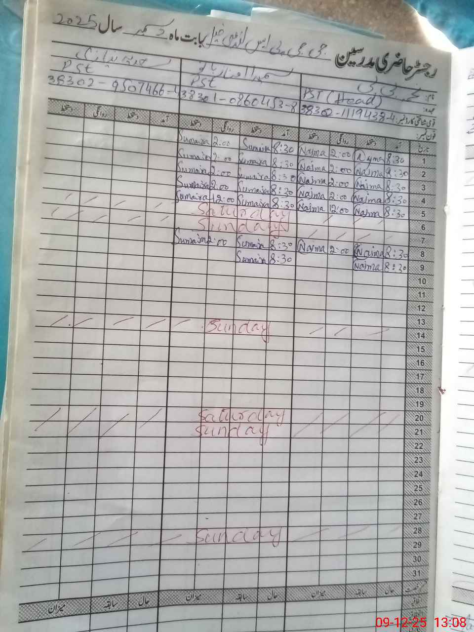 | Name: NA**** BI**** Designation: (School Headmaster's/Headmistress's) PST Phone/Cell Number: 03**** |