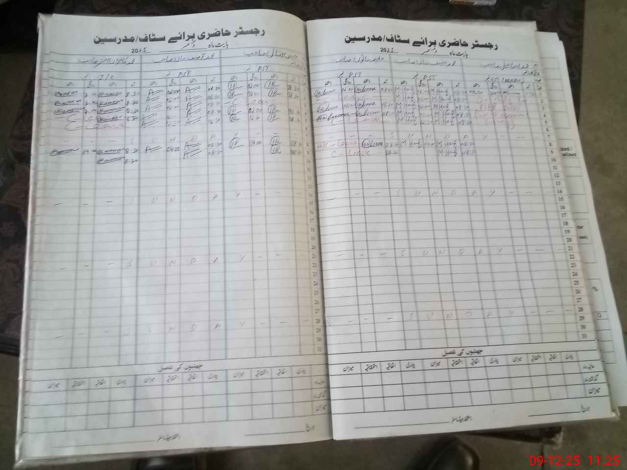 | CNIC | Full Name | Designation | R/C | Absence During Last Calender Month |