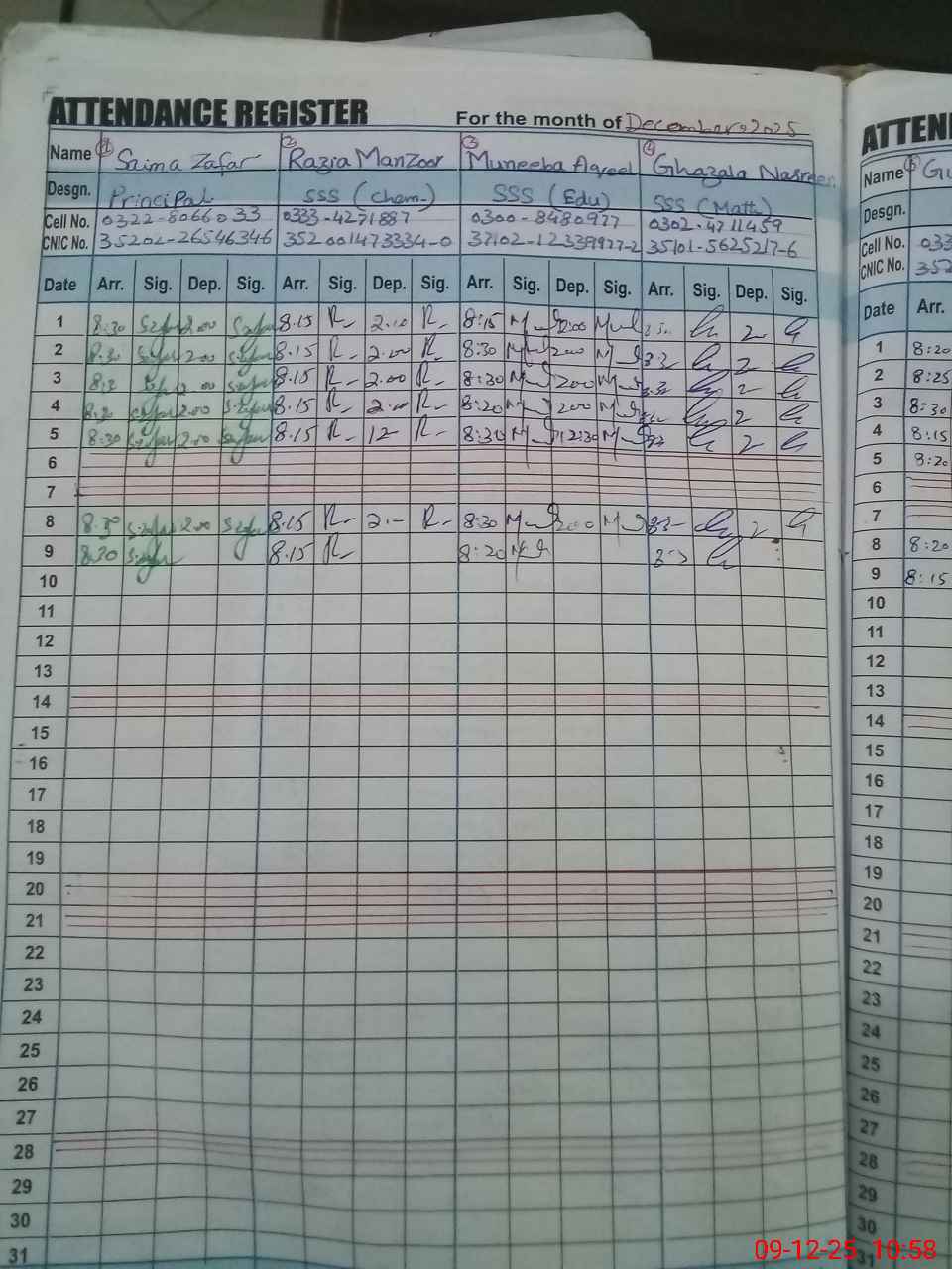 | CNIC | Full Name | Designation | R/C | Absence during last cal. month |