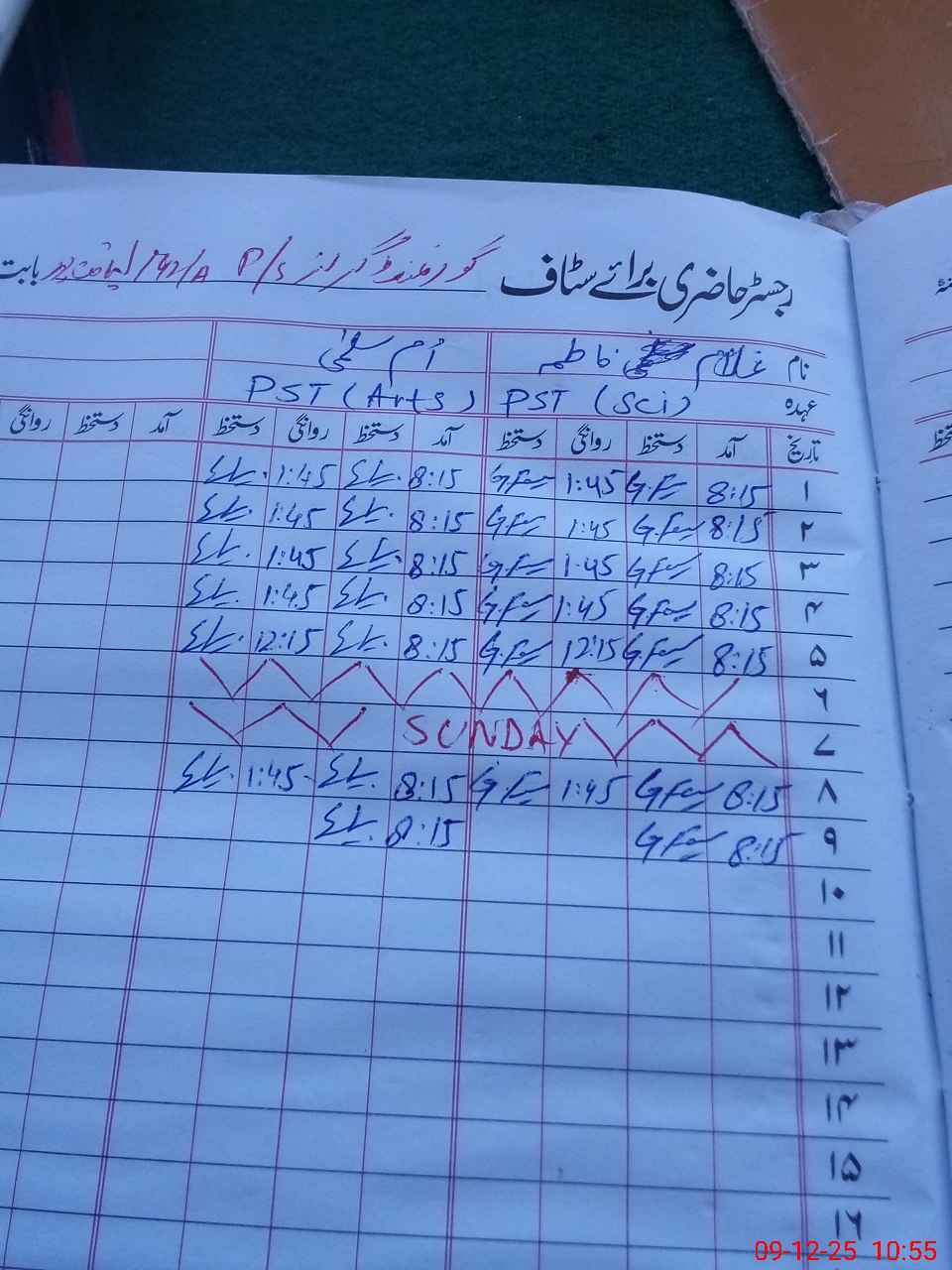 | CNIC | Full Name | Designation | R/C | Absence During Last Calender Month |