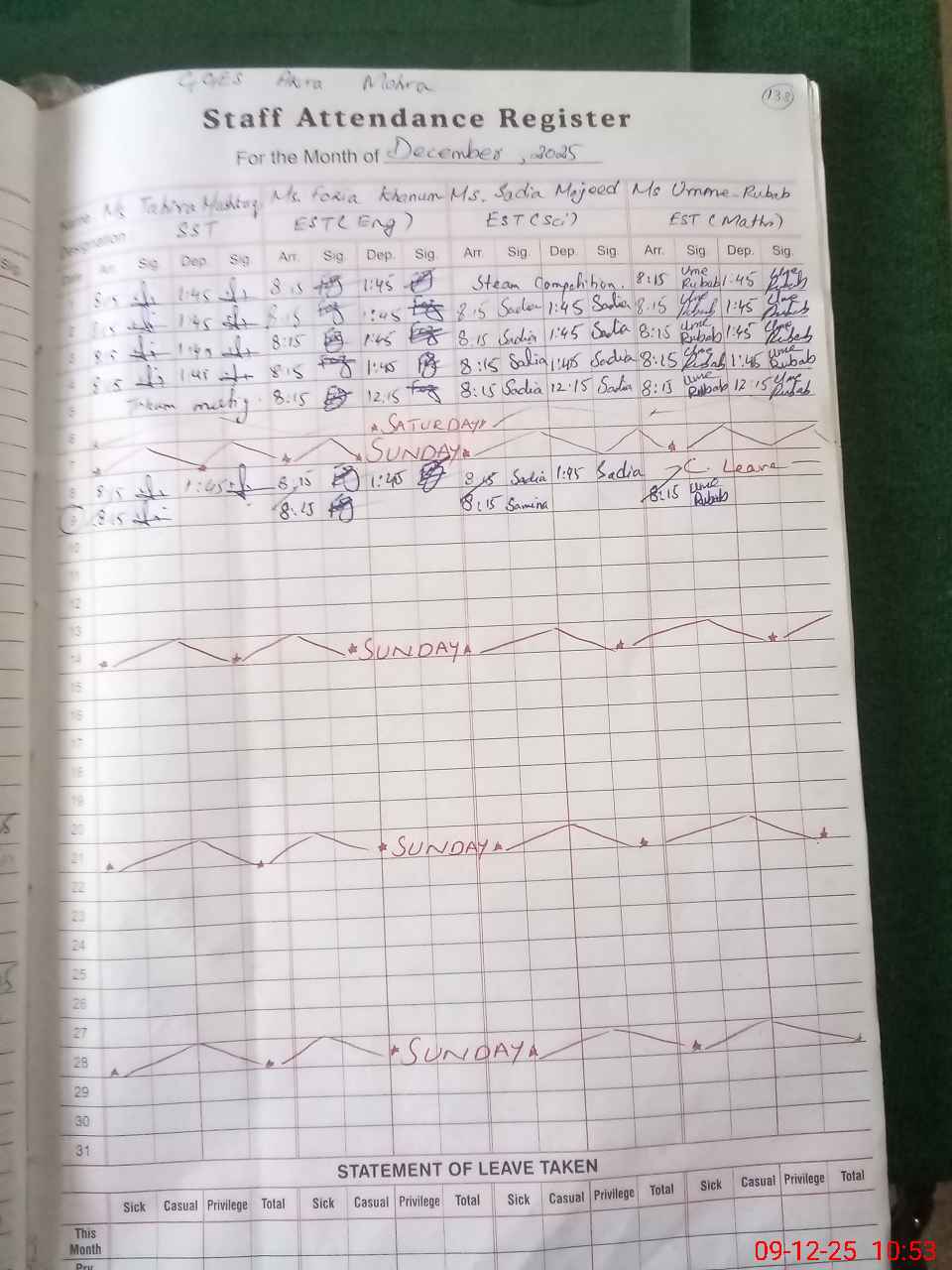 | 37**** | Mu**** Sh**** | C IV | Regular | 0 | 0 | 31 | 0 | 0 | 0 | 0 | 0 | 0 | Absent (Un-Authorized) |