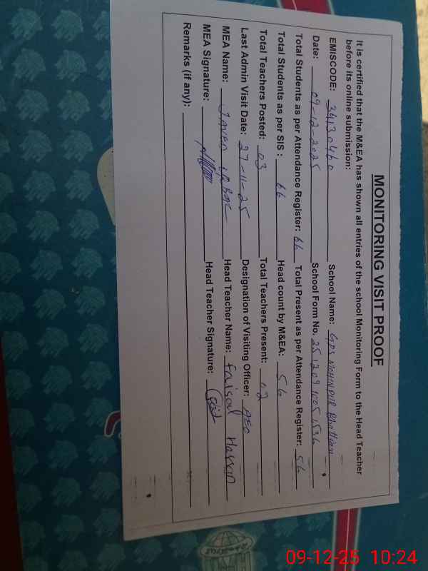 | Certified that this School was Inspected by the Undersigned MEA/DMO Today and the Information Stated Above is as Per Record. | |||||