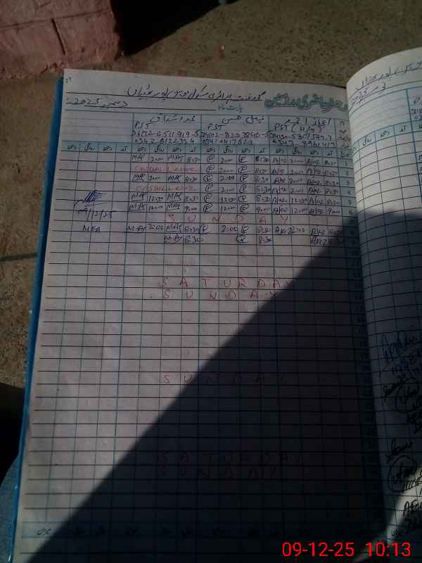 | CNIC | Full Name | Designation | R/C | Absence During Last Calender Month |